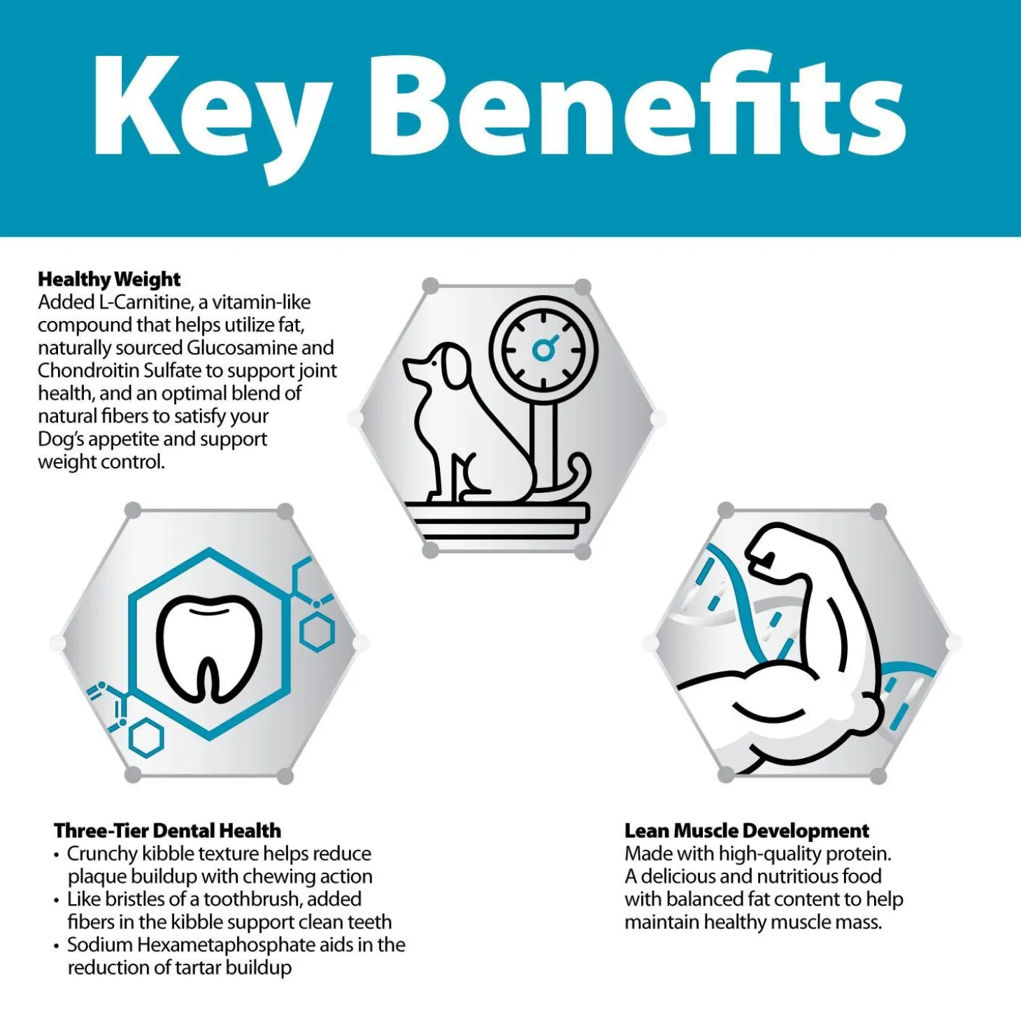 - Contains a blend of insoluble and soluble fibers to promote satiation and keep your dog feeling full