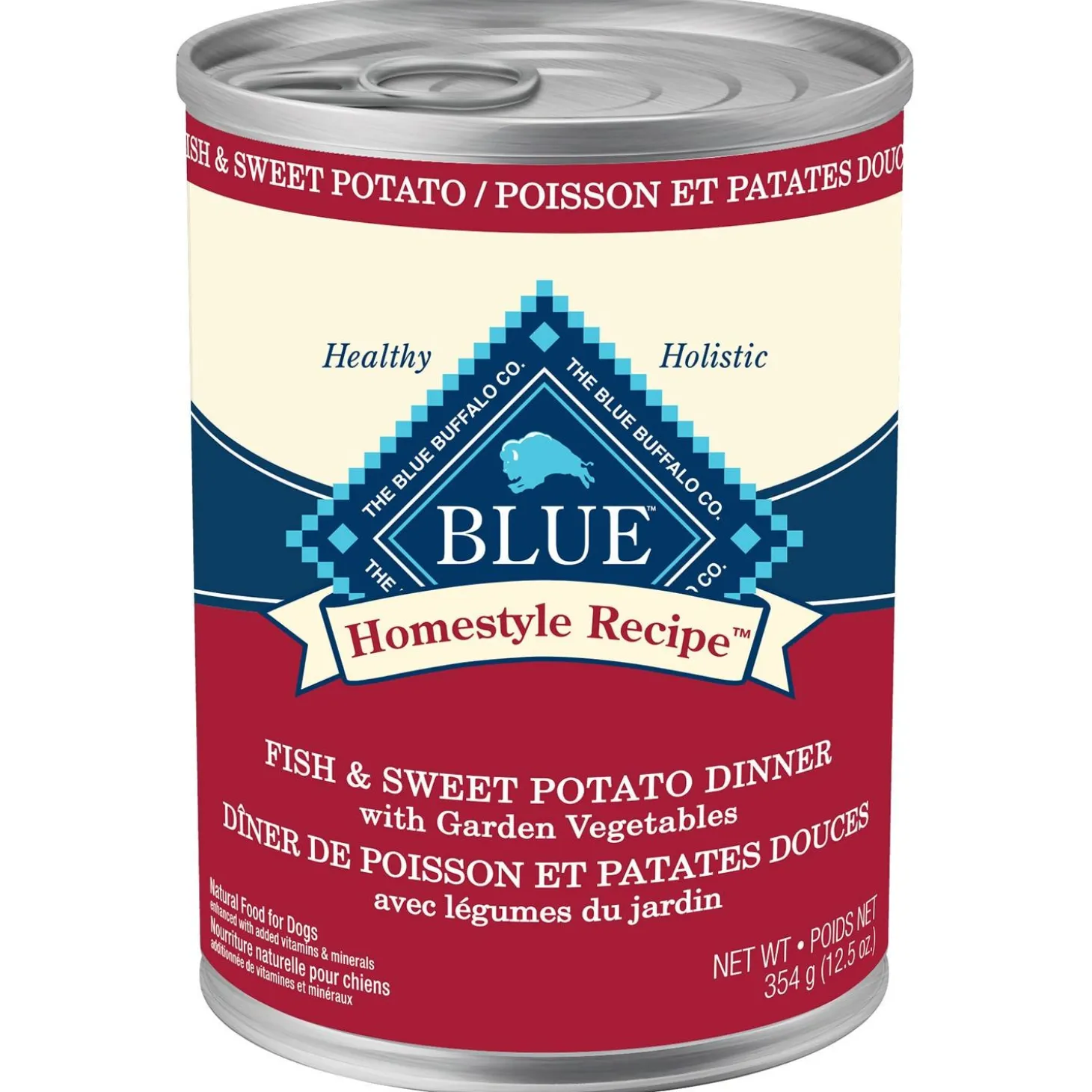 BLUE Homestyle Recipe Fish & Sweet Potato with Garden Vegetables Adult Dog Food is made with real fish as the first ingredient, plus sweet potatoes, this recipe is packed with the finest natural ingredients and enhanced with vitamins and minerals. Plus, it’s formulated to support the nutritional needs of adult dogs. This recipe contains high-quality protein from real meat to help your dog maintain lean muscle mass, plus healthy carbohydrates to provide energy for an active life.