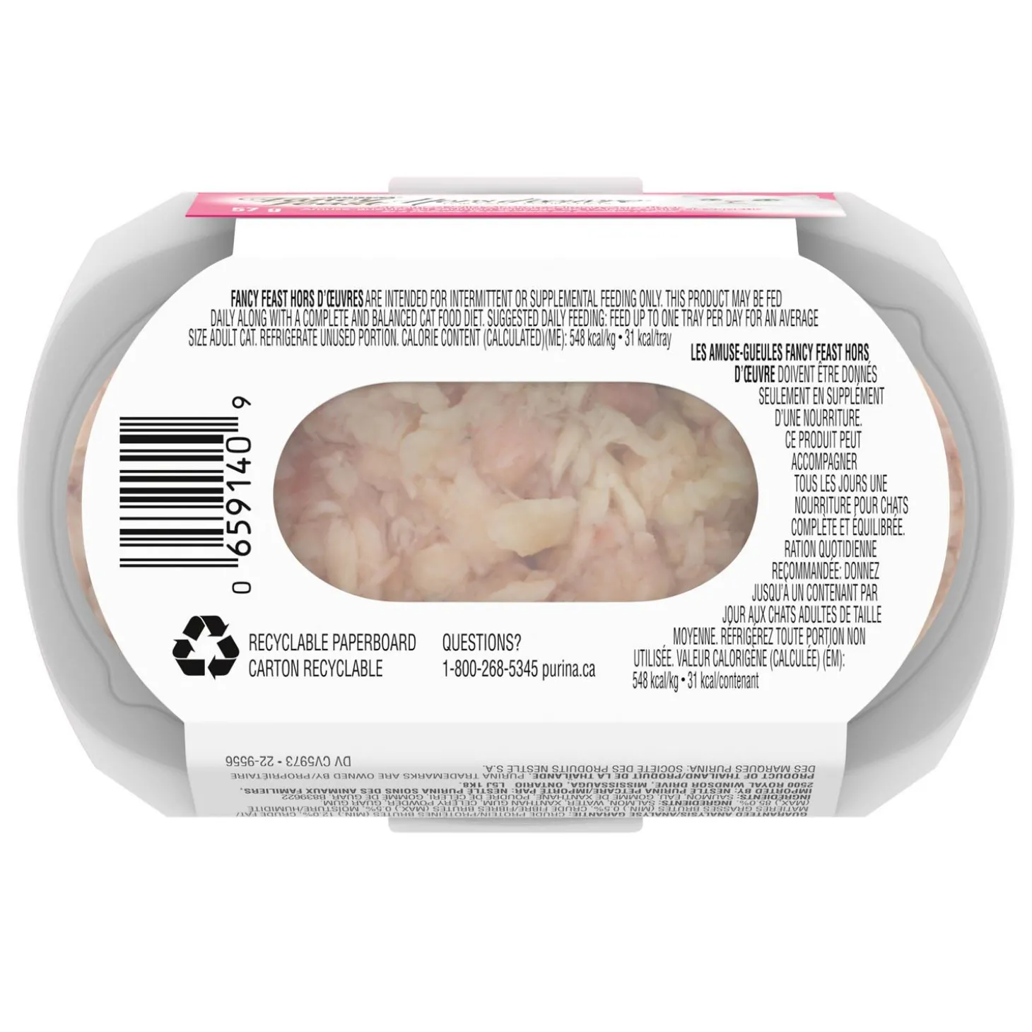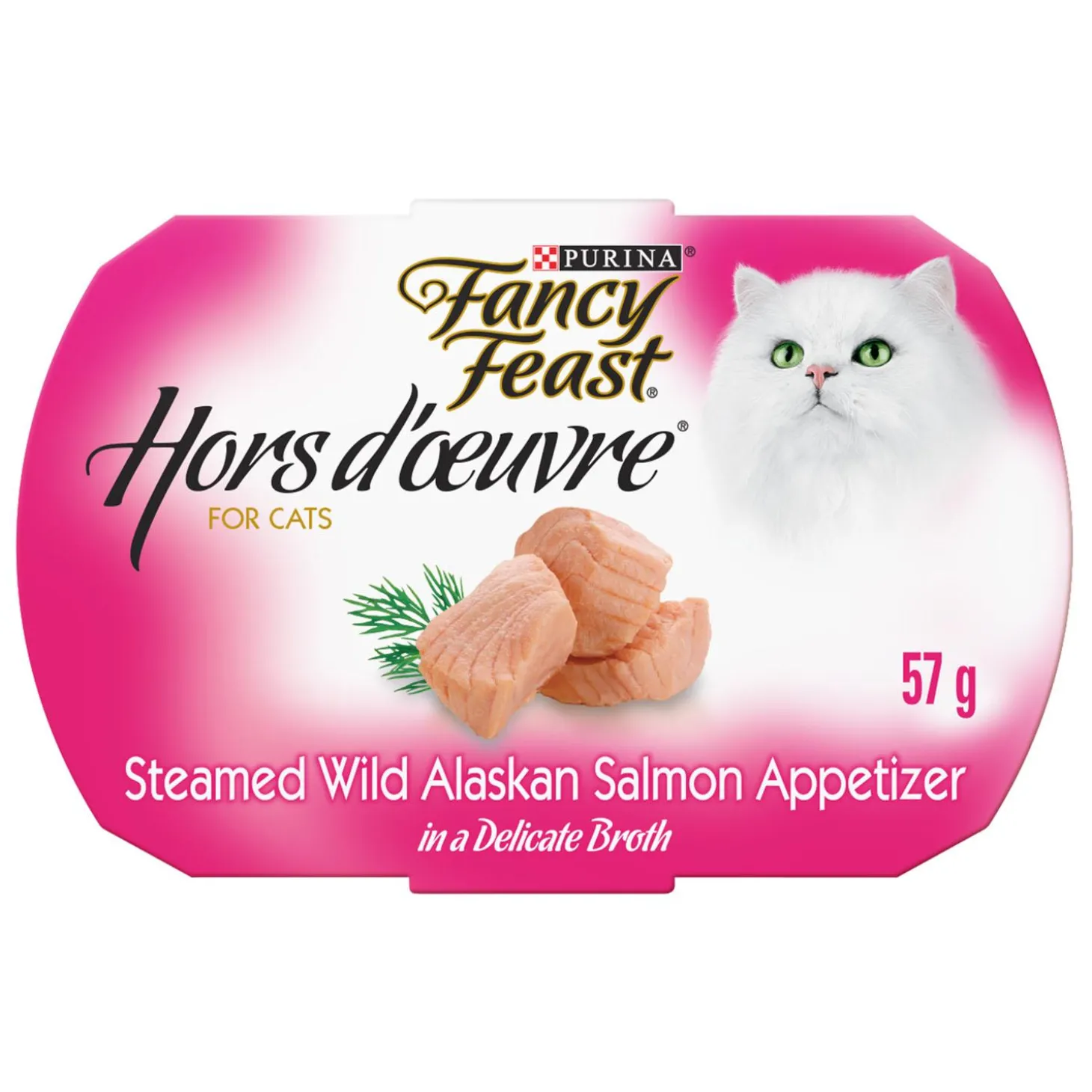 Fancy Feast Hors d’Oeuvre Steamed Wild Alaskan Salmon Appetizer Cat Food Topper will delight your cat; it’s made with flaked salmon in a delicate broth. Crafted without artificial flavours, colours or preservatives, it’s the perfect complement to your cat’s meal.