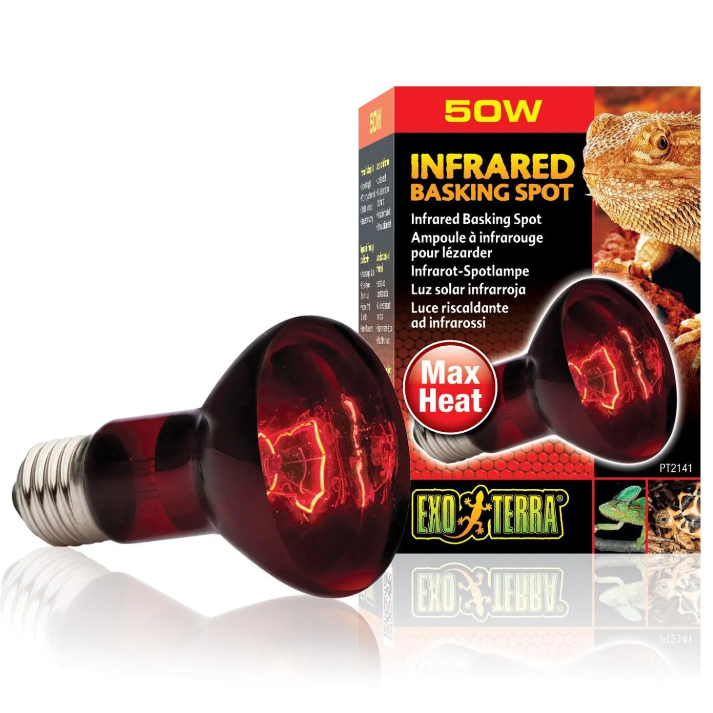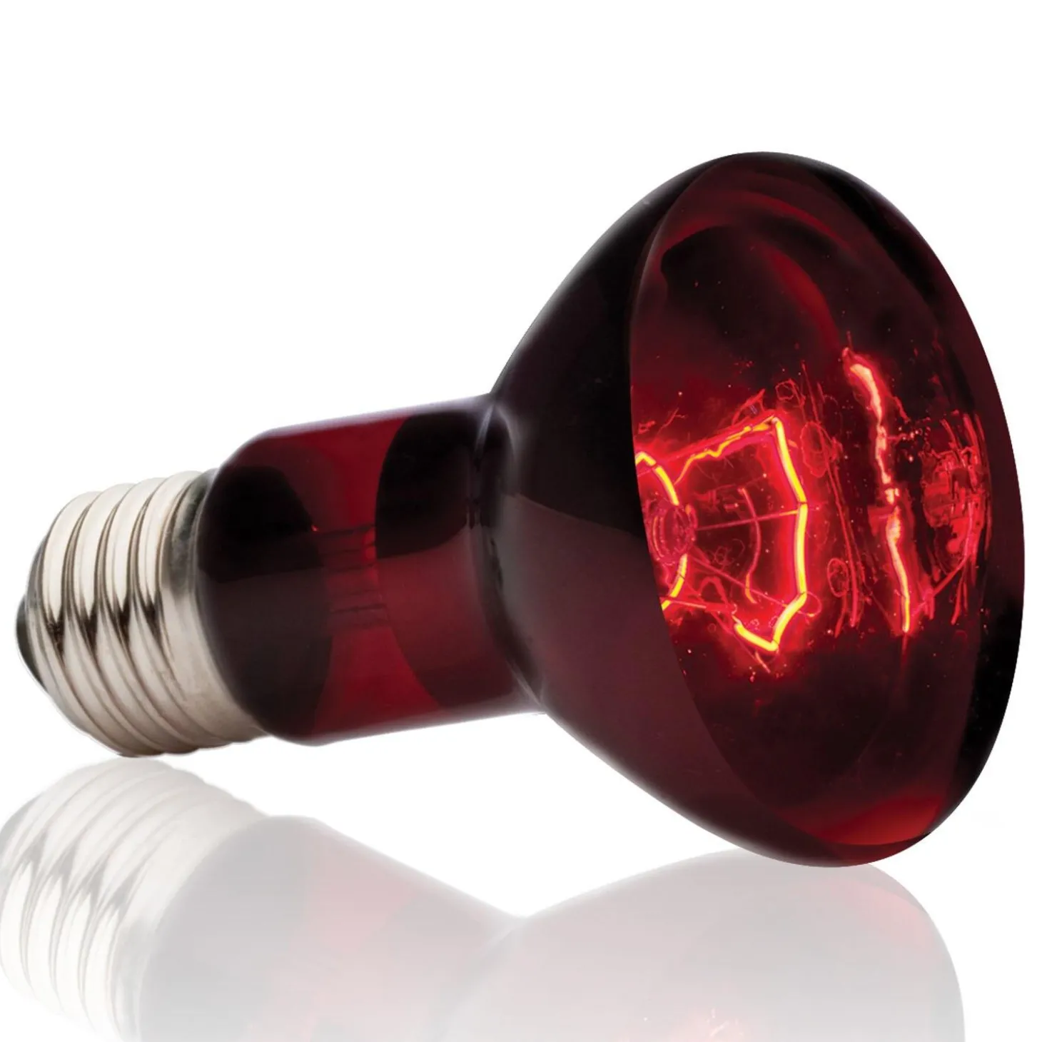 Exo Terra Infrared Basking R20 Bulb emits infrared heat waves and is a typical heating lamp. The spot lamp has a special build-in reflector to direct the heat in any direction required. The red glass transmits Infrared waves produced by the special filament of the bulb. The reddish light will not disrupt normal activity during night or day, which makes it an excellent 24 hours heat source.
