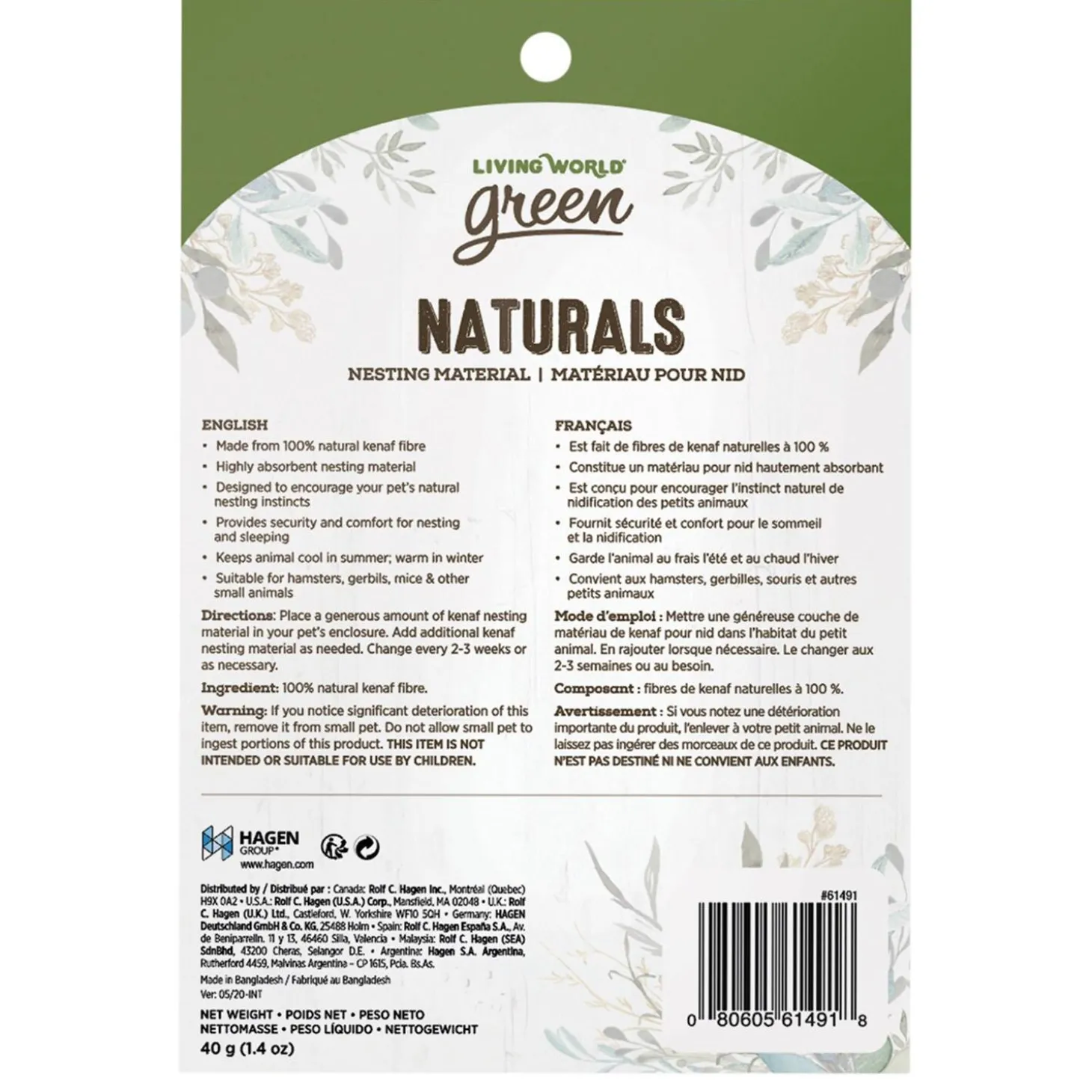 Living World Green Kenaf Small Animal Nesting is made from 100% natural kenaf fibers. This nesting material is designed to encourage the natural nesting instinct of small animals, and provides safety and comfort for sleeping. Additionally, it helps keep your smally friend cool in summer and warm in winter. Suitable for hamsters, gerbils, mice and other small animals