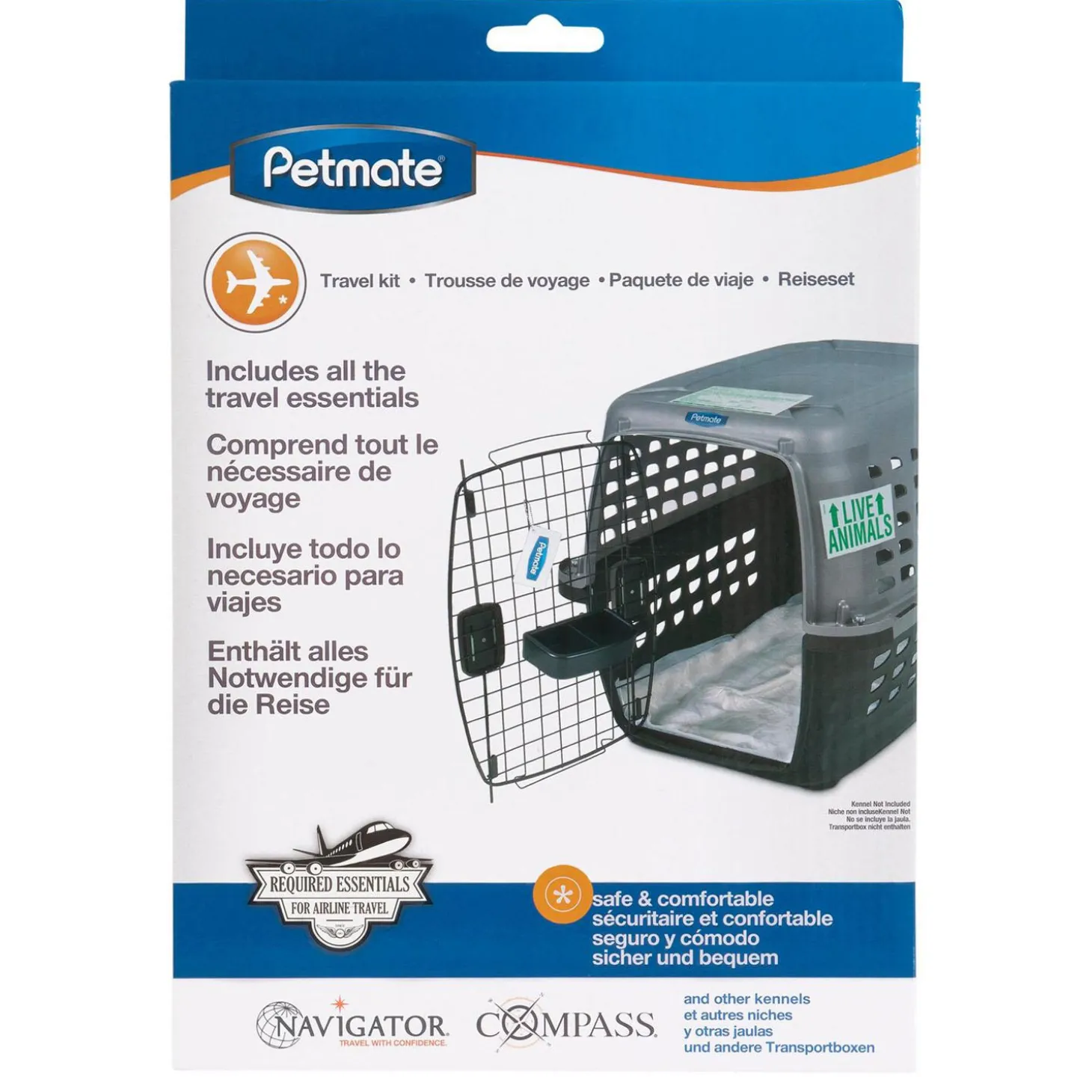 Petmate Kennel Airline Travel Kit has everything you need to ensure safe travels for your pet and to make traveling easier for you. Many airlines do not accept plastic kennels with plastic nuts/bolts or pegs that hold the top and bottom together. This kit includes metal nuts/bolts to modify your kennel. Before traveling with your pet please consult your airline for their pet travel requirements.