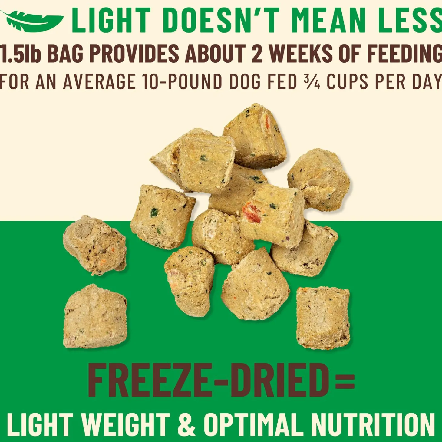 - Ingredients are uniquely prepared to maximize nutritional value, artfully combined, and freeze-dried into convenient, scoop-and-serve bites