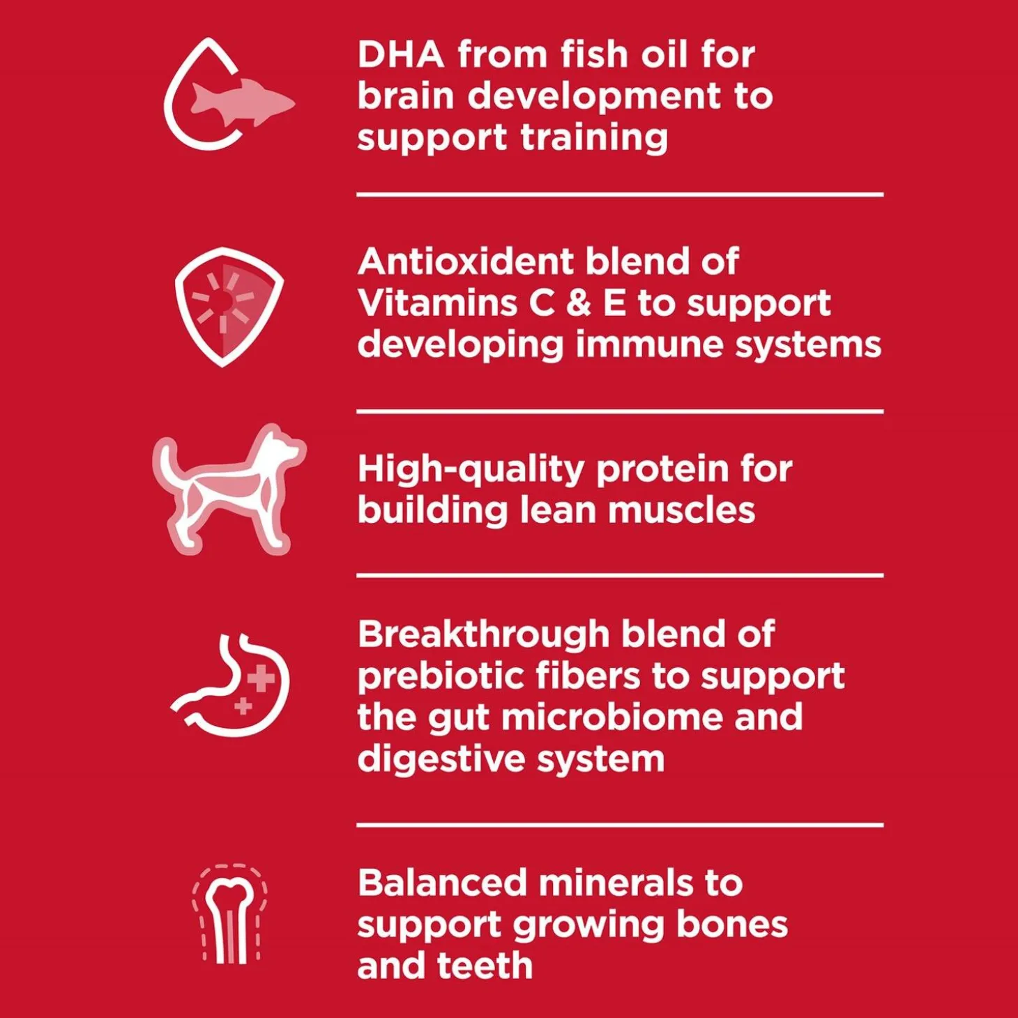 - Uses DHA from fish oil to support your large dog’s eye development and brain function