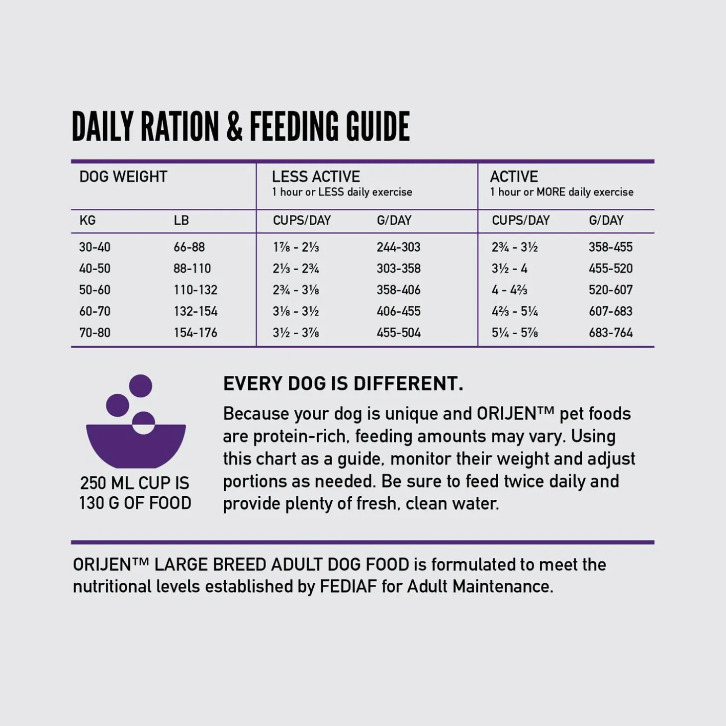 ORIJEN Large Breed Adult Dog Food will help your large breed dog thrive with a Biologically Appropriate diet packed with whole animal ingredients. This diet is tailored to the unique needs of large breed dogs, and it helps support key health benefits including Joint Health, Skin & Coat Health and Digestive Health. Crafted with 85%* quality animal ingredients like fresh or raw chicken, turkey, and wild-caught fish, this recipe is rich with nutrients that help your large breed dog truly thrive. Packed with WholePrey animal ingredients like succulent organs, this recipe is made with the most nutrient-dense parts of the prey to deliver the nourishment large breed dogs need. The result is a diet for your canine companion that is beyond comparison.