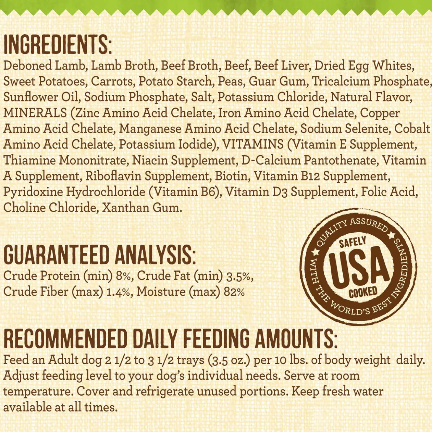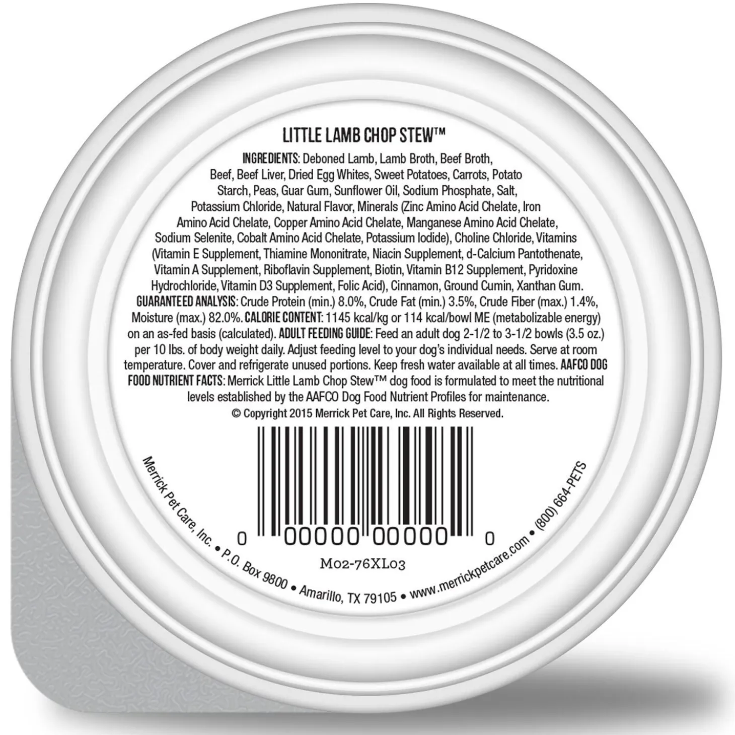 Merrick Lil’ Plates Little Lamb Chop Stew Small Breed Adult Dog Food is a small breed wet dog food that delivers a delicious taste and meaty texture your tiny pup will love. Real deboned lamb is always the first ingredient in this Merrick small breed dog food to help build and maintain healthy muscle tissue and energy levels. Each high protein dog food tray offers your pup a real meat dog food made without grain or gluten ingredients for easy digestibility. The protein-rich, wet food for dogs is crafted with a savory lamb and beef broth for flavourful gravy dogs love. Serve your dog wet food that offers complete and balanced nutrition with essential vitamins and minerals with Lil Plates dog food. This grain free dog food recipe has no gluten ingredients, and no artificial colours, flavours or preservatives. This Merrick wet dog food grain free recipe is packed in single-serve, easy-open trays. Merrick dog food recipes are crafted in the Hereford, TX kitchen and cooked in the USA.