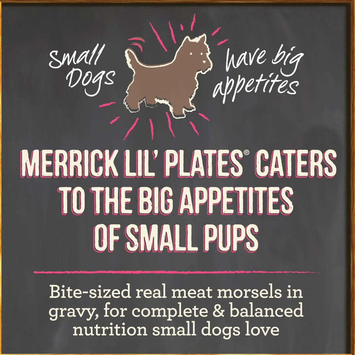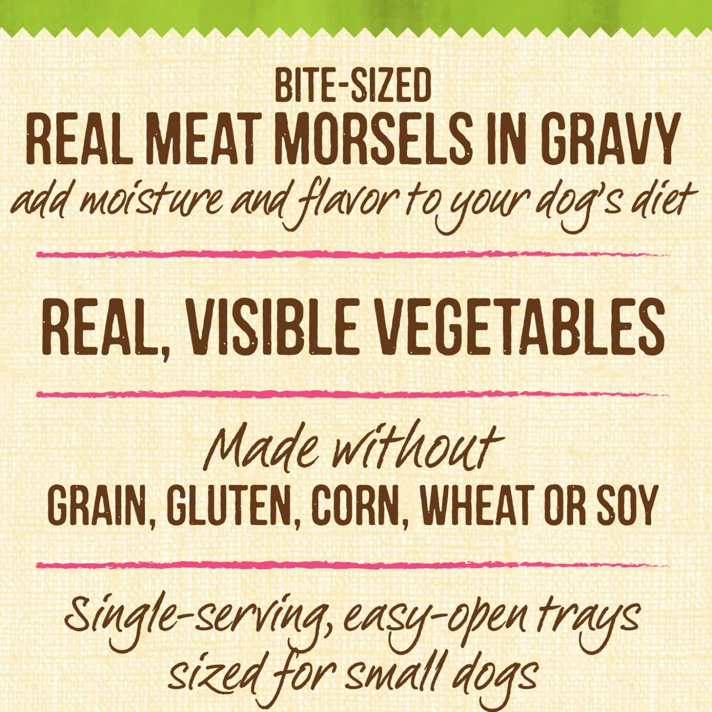 - This small breed dog food wet recipe delivers a delicious meal, or meal topper, packed into single-serve trays that are easy to open
