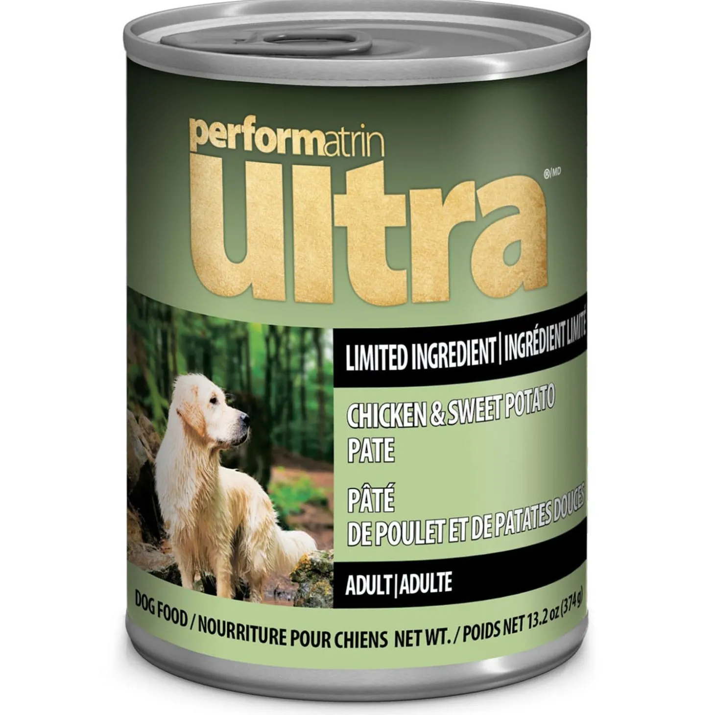 Performatrin Ultra Limited Ingredient Chicken & Sweet Potato Pate Adult Dog Food keeps it simple. With single sourced protein from chicken to support strong muscles, and sweet potato to provide healthy dietary fiber and energy, making this an easy to digest, complete and balanced meal perfect for dogs with food sensitivities. This recipe meets your dog’s daily requirements and promotes whole body health and wellness.