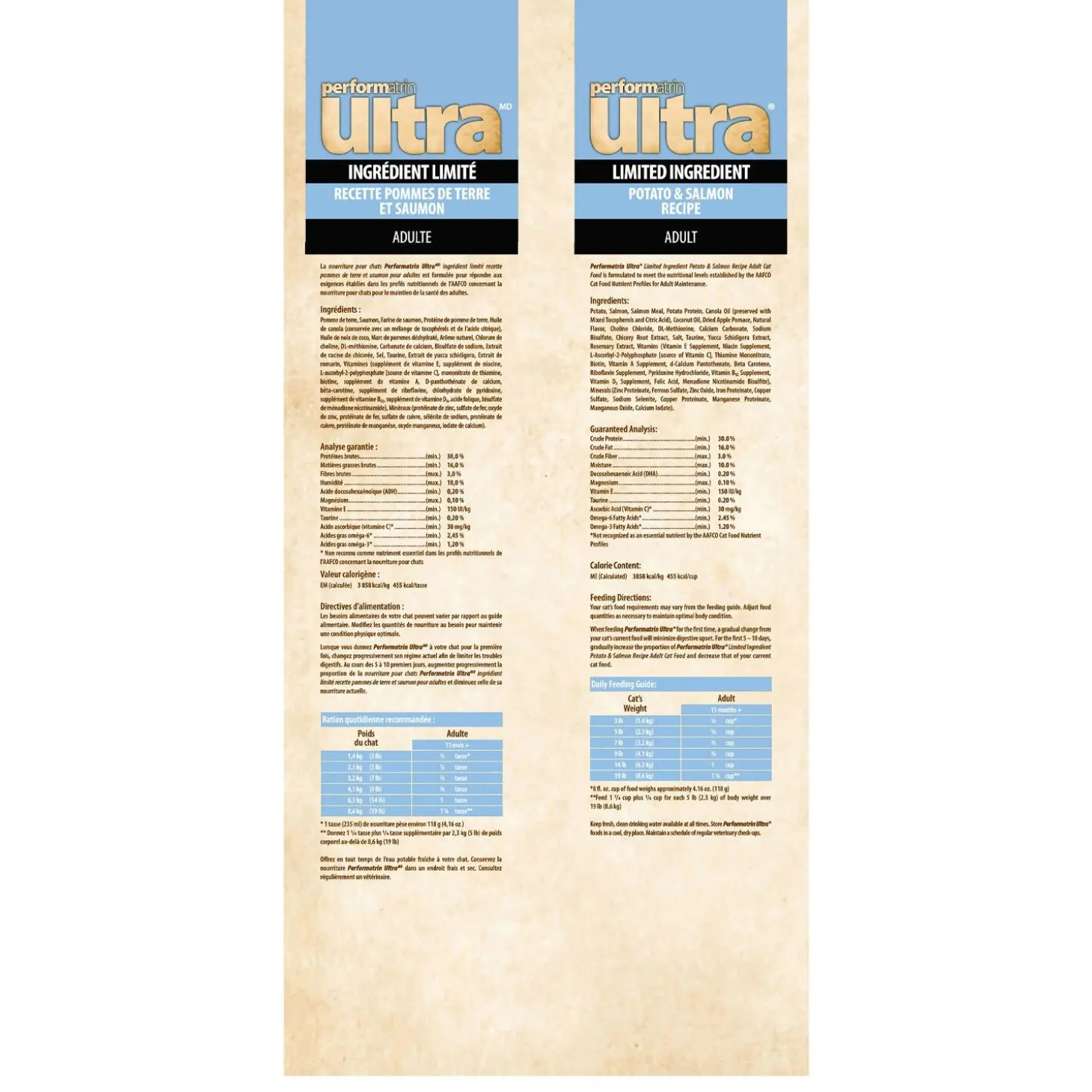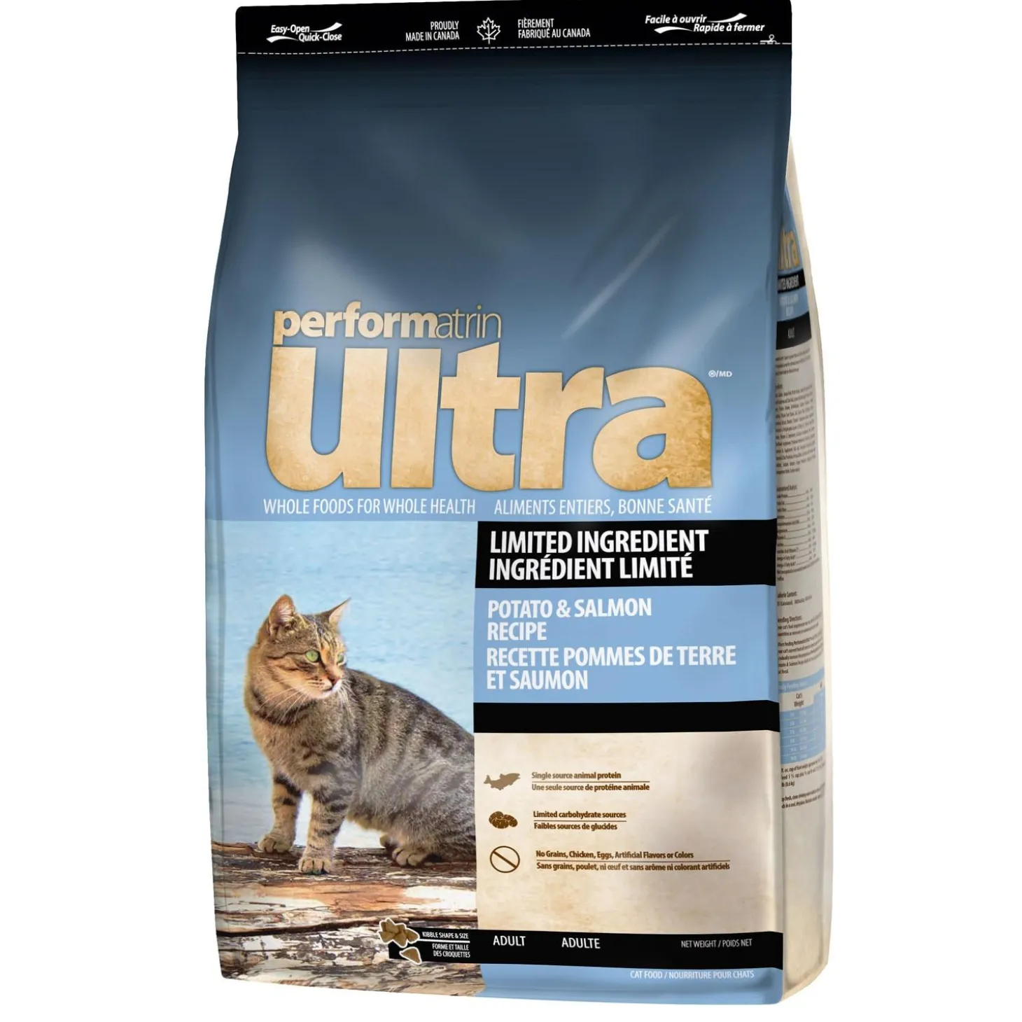 Performatrin Ultra Limited Ingredient Potato & Salmon Recipe Adult Cat Food keeps it simple. With single sourced protein from salmon to support strong muscles, and potato to provide healthy dietary fiber and energy, making this an easy to digest, complete and balanced meal perfect for cats with food sensitivities. This recipe meets your cat’s daily requirements and promotes whole body health and wellness.