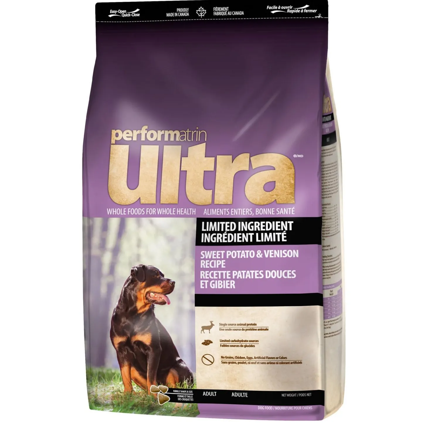 Performatrin Ultra Limited Ingredient Sweet Potato & Fish Recipe Small Bite Adult Dog Food keeps it simple for dogs with food sensitivities in a smaller size kibble. Single sourced protein from salmon to support strong muscles, and sweet potato to provide healthy dietary fiber and energy, making this an easy to digest, complete and balanced meal perfect for dogs with food sensitivities. This recipe meets your dog’s daily requirements and promotes whole body health and wellness.