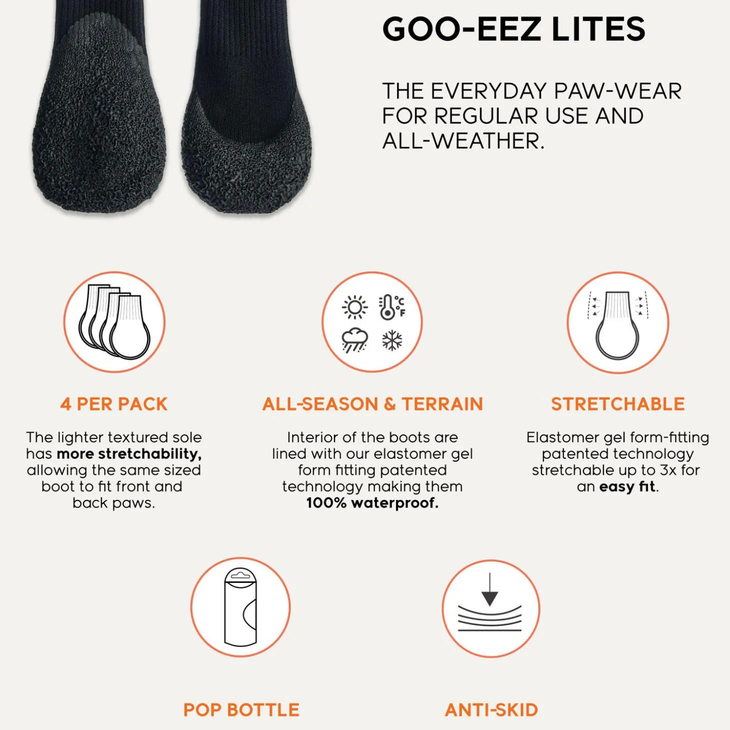Goo-eez Lites All Seasons Green Dog Boots are easy to put on, and they stay on your pups paws! Ideal for everyday use, these booties feature our signature Form-fitting Gel Patented Technology and specially weaved rib fabric.