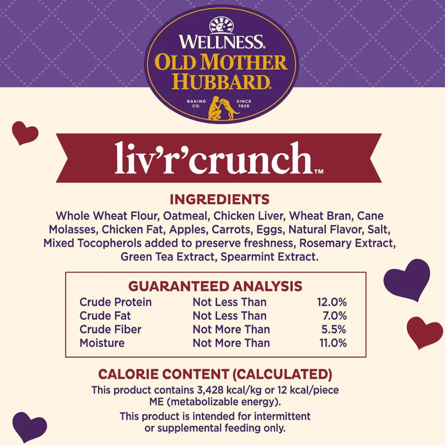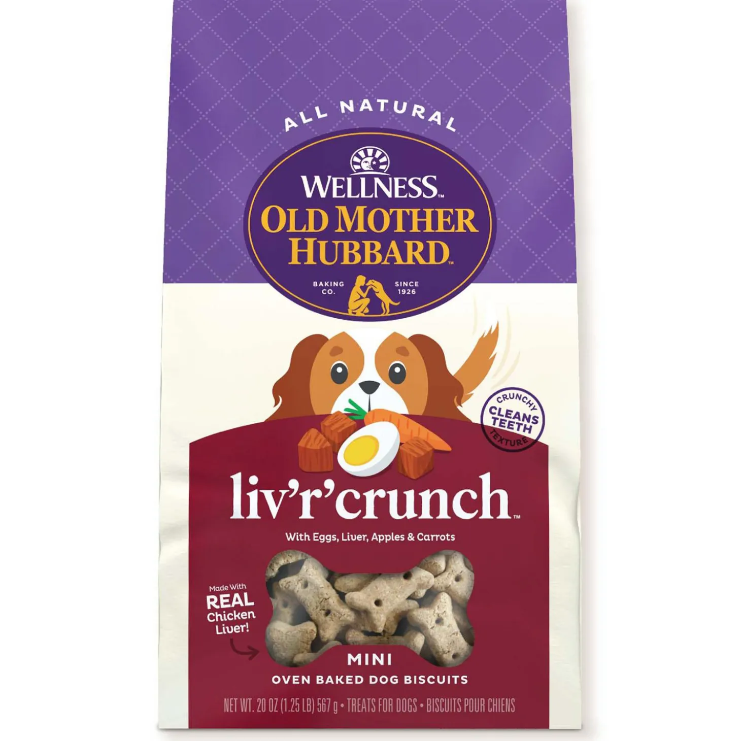 Old Mother Hubbard Liv’R’Crunch Mini Dog Treats are all natural with no added artificial preservatives, and their crunchy texture helps clean teeth as your pup chews. Every treating moment is a chance to show ’em some love. That’s why these homestyle recipes start with wholesome, mouthwatering ingredients. Each biscuit is slowly oven-baked to preserve the natural flavours in all the varieties dogs love to catch, chew and eat. They’re made with a taste of oatmeal, chicken liver, apples, and carrots for a tasty and wholesome treat they’ll love getting and you’ll love giving. A classic great taste since 1926!