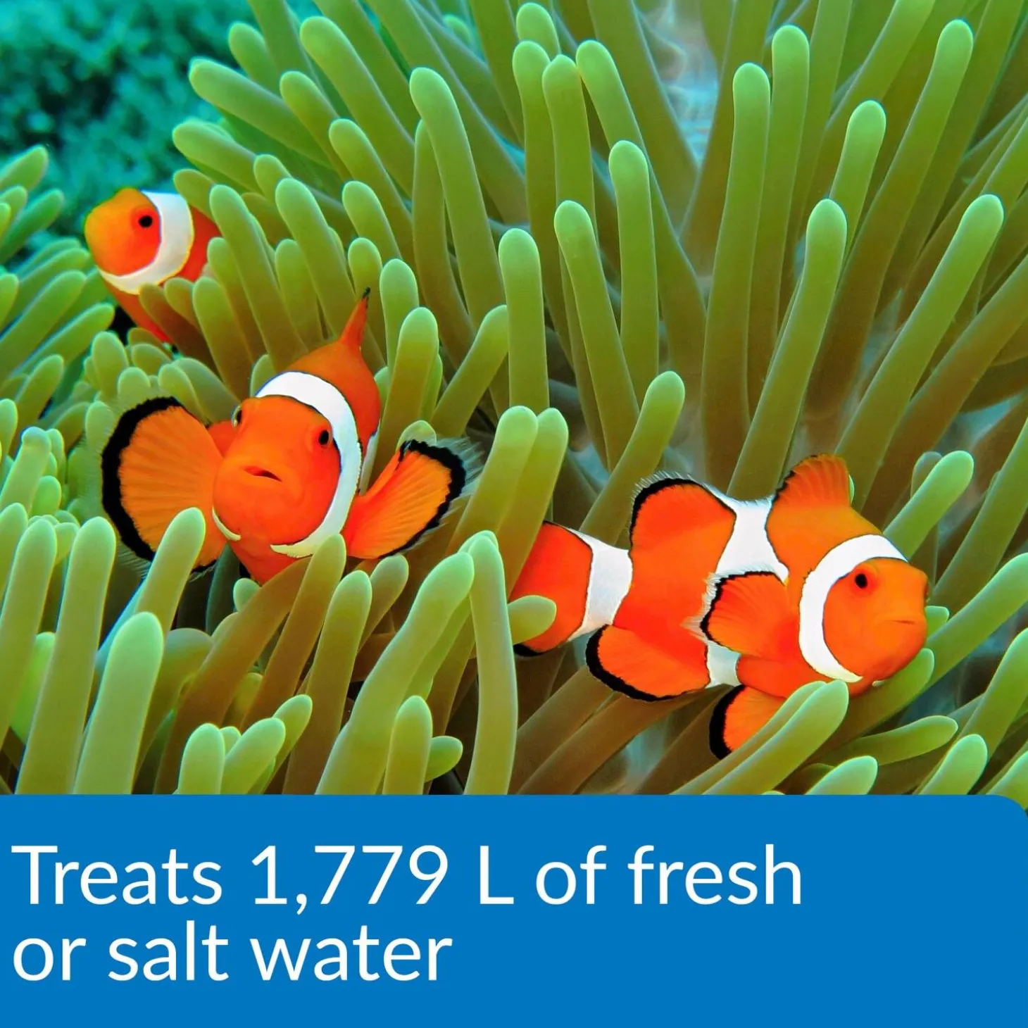 - Treats 1.779 L of fresh or salt water