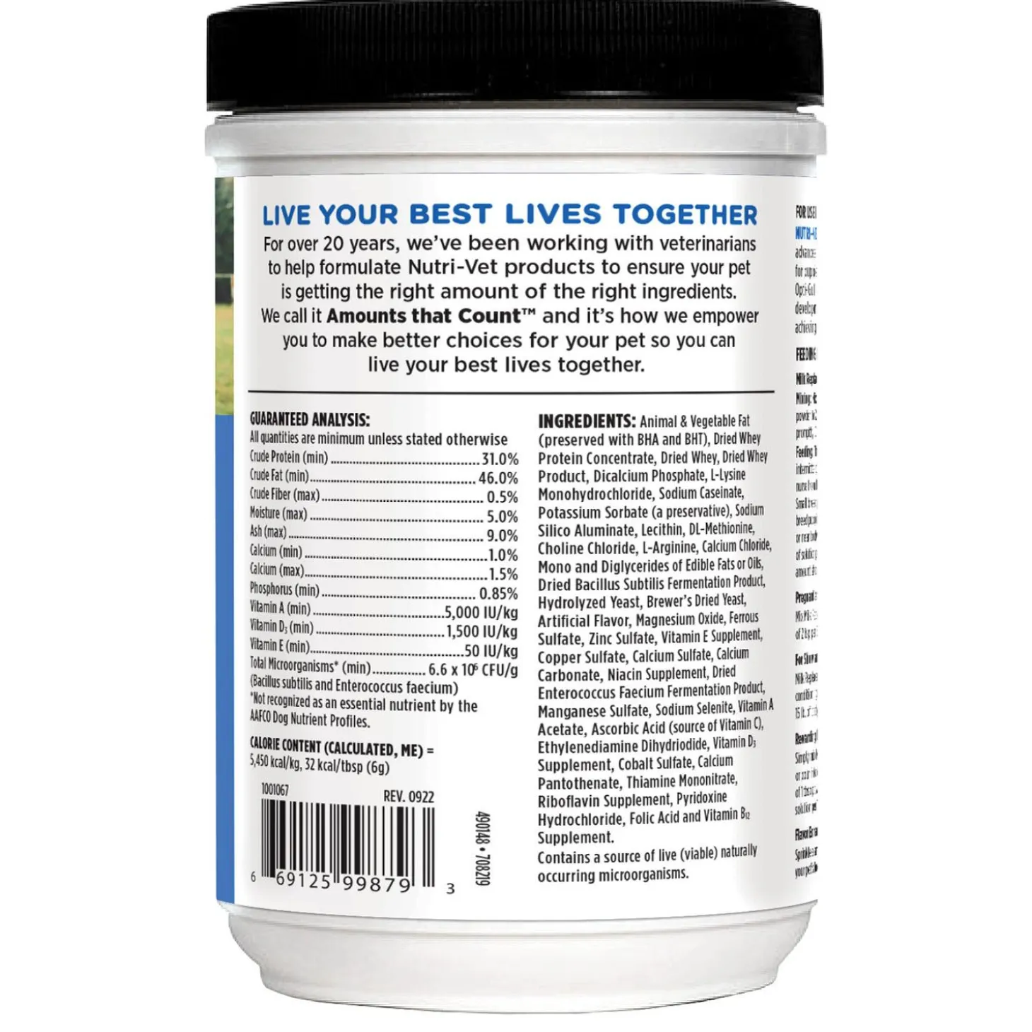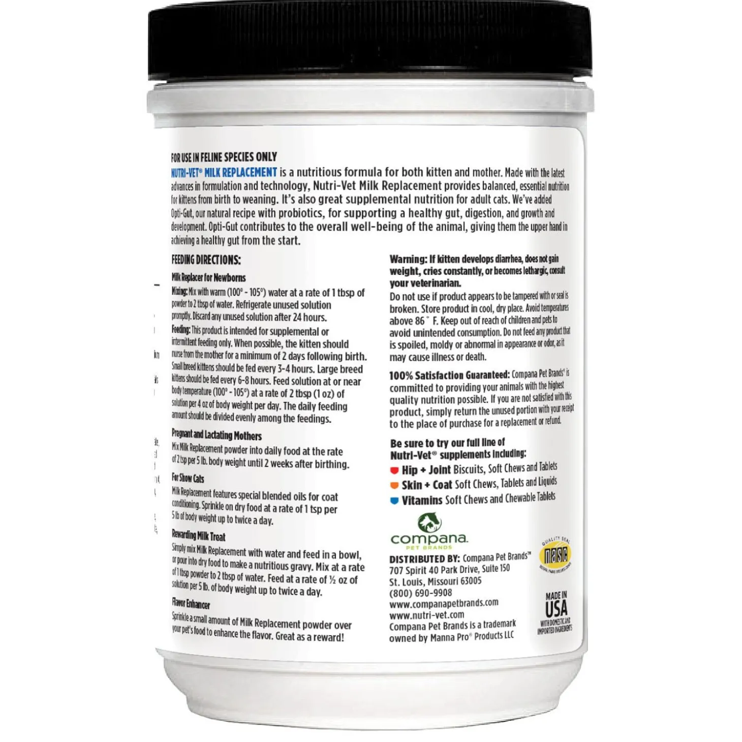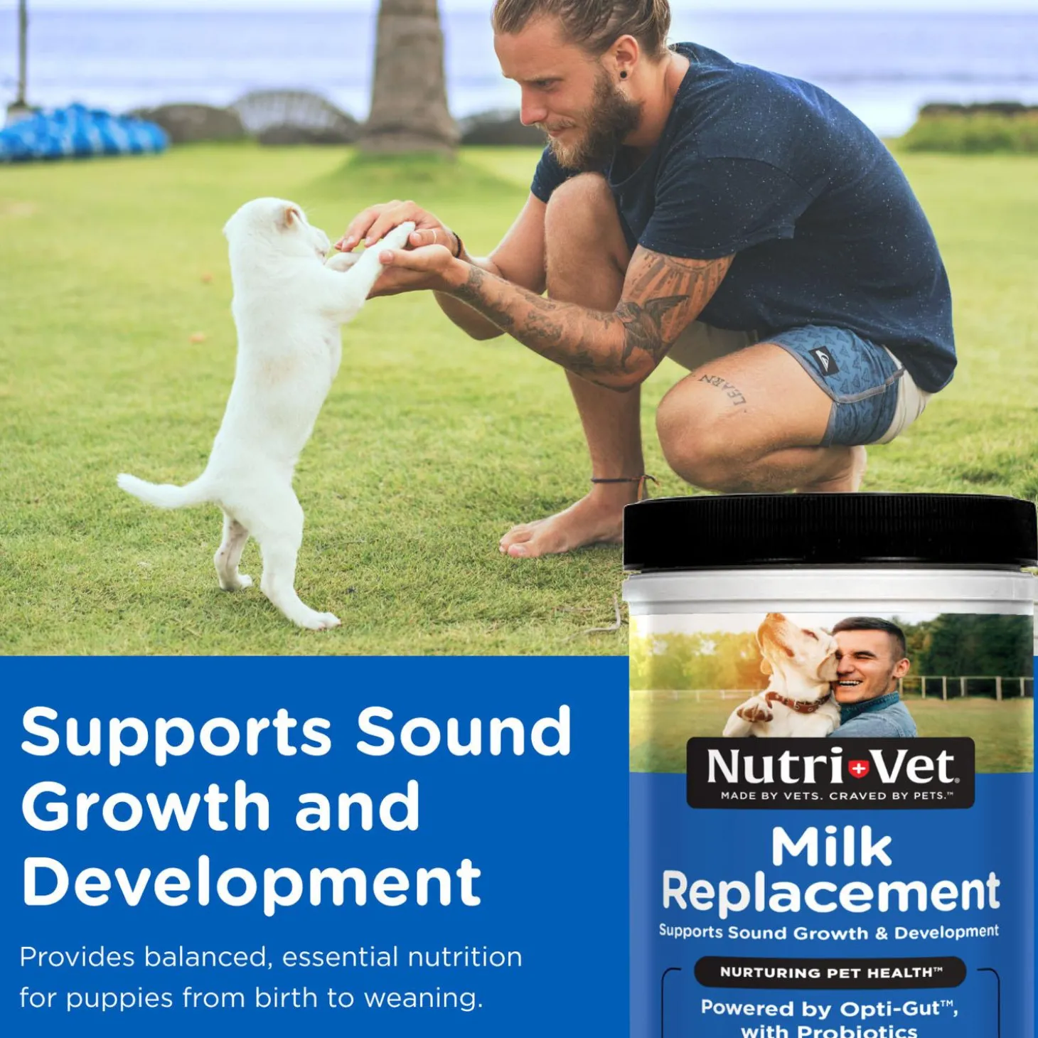 Nutri-Vet Milk Replacement Puppy Supplement contains essential amounts of protein, fat and carbohydrates plus vitamins, minerals and amino acids that newborn puppies need. It can also be used as a nutritional supplement for pregnant and nursing dogs, convalescing or senior dogs. If possible, puppies should nurse from their mother for the first two days of their lives to receive nutrient rich colostrum. Mother’s colostrum helps strengthen the immune system and contains growth factors to stimulate protein synthesis, fat utilization and cell growth.