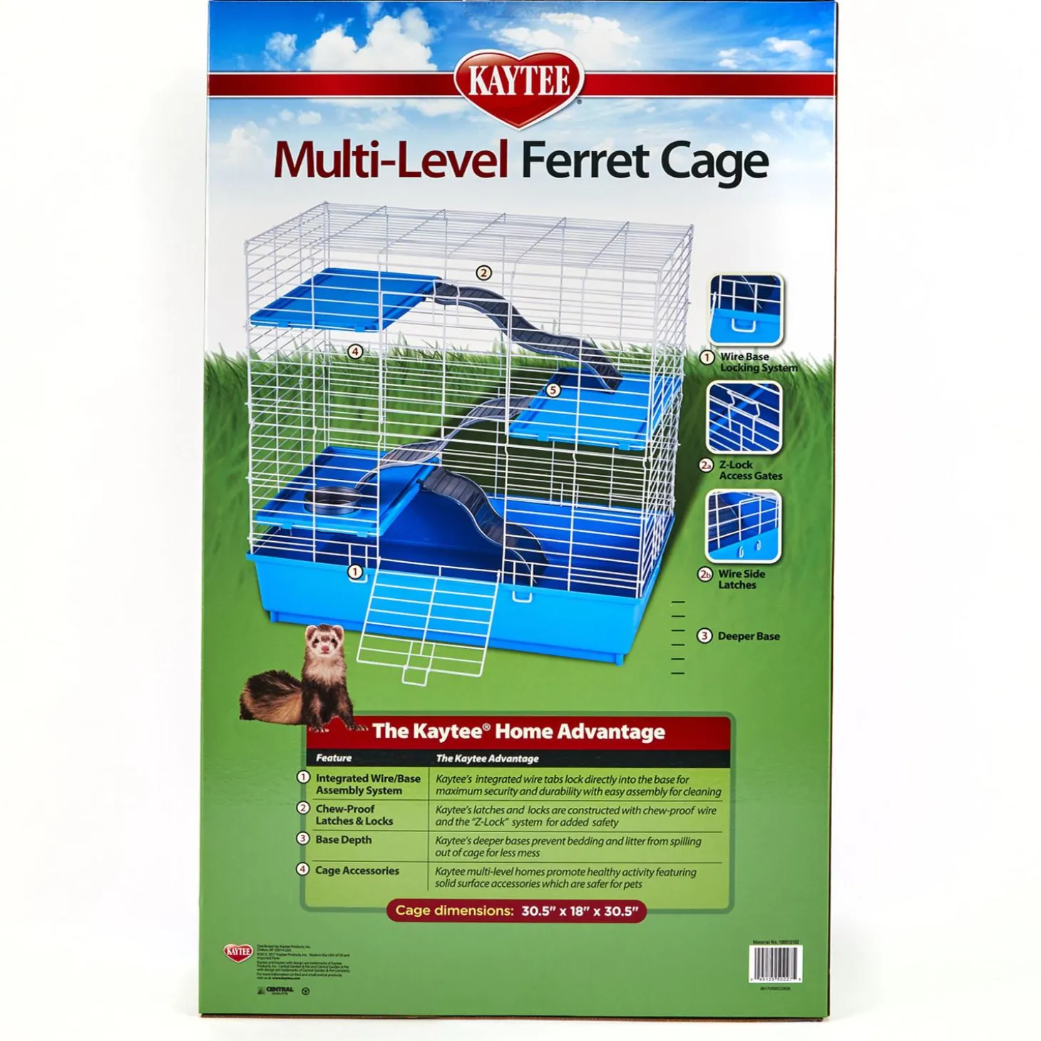 Kaytee Multi-Level Ferret Cage provides exciting layers of living space for frisky ferrets and other small pets! The deep plastic base prevents bedding from scattering while the wire top makes for easy viewing and superb ventilation. With your own Kaytee Multi-Level Ferret Cage, you too can discover why keeping small pets is so much fun! Unique design ensures added security and durability.