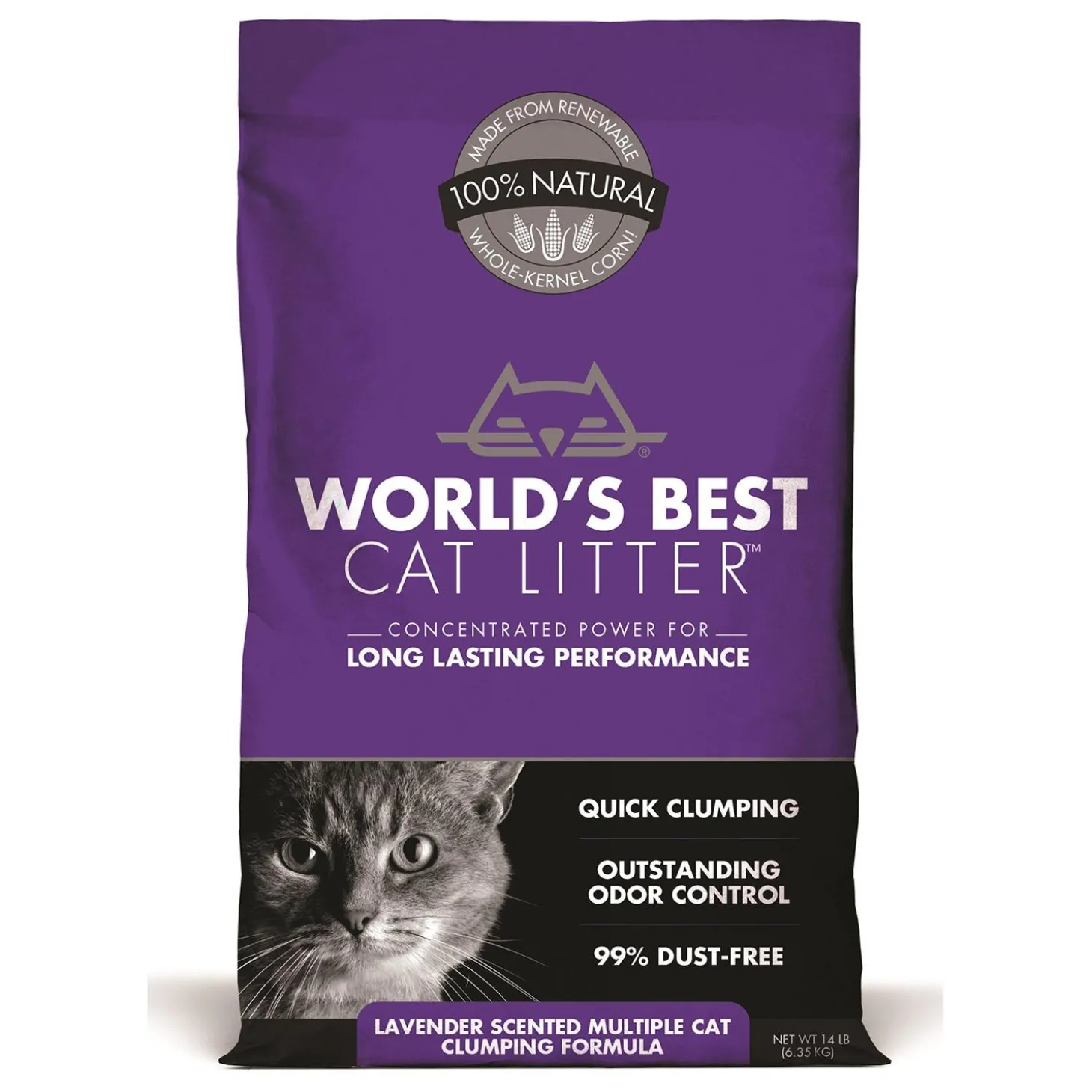 World’s Best Multiple Cat Lavender Scented Cat Litter is just like the other top formulas but with real lavender oil for a calming floral fragrance. It’s naturally safe for you and your cat with no harmful chemicals, no artificial perfumes, and no clay dust. It lasts 2x longer than the leading U.S. brand.
