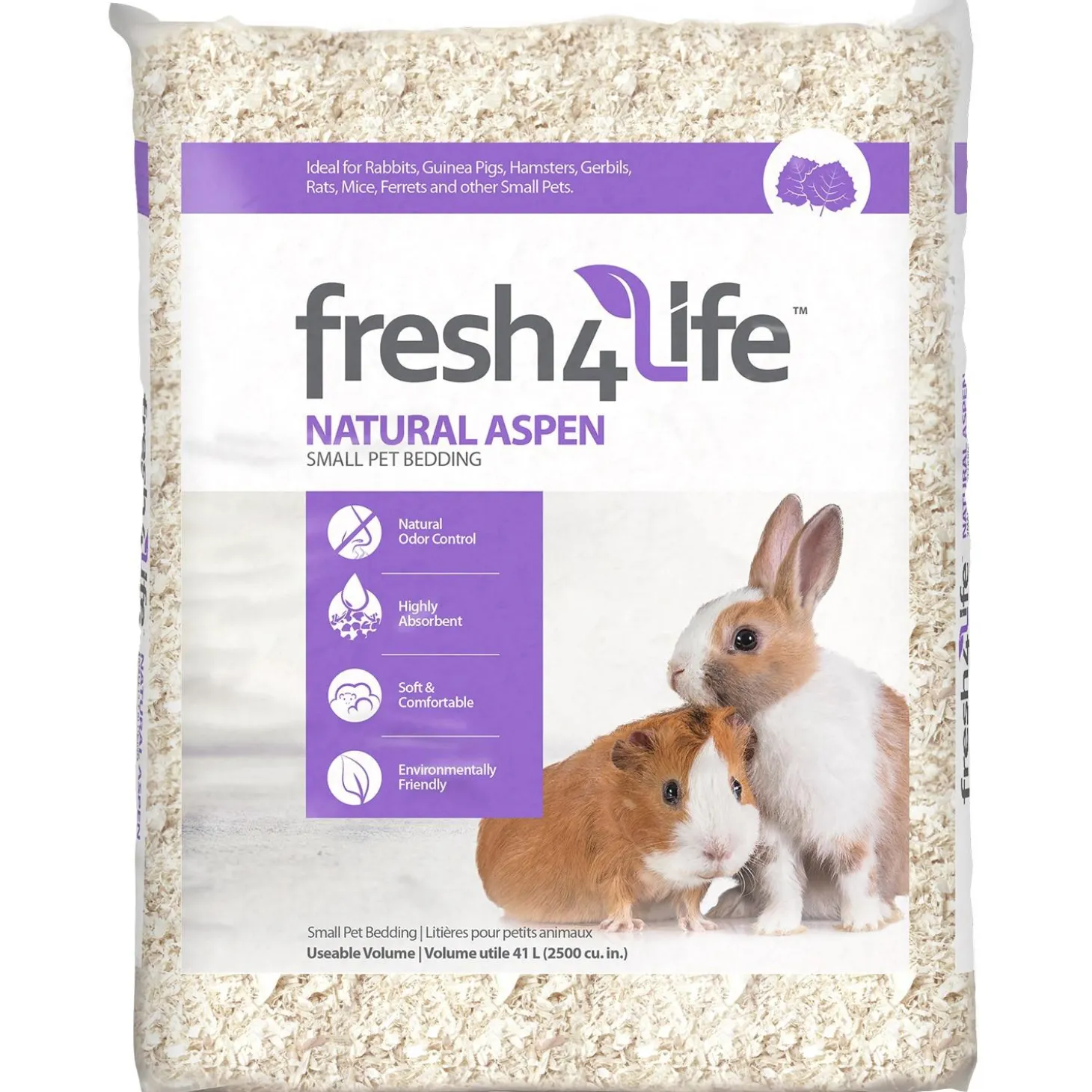 Fresh 4 Life Natural Aspen Small Pet Bedding is made from all-natural renewable resources with no added artificial scents. This bedding naturally controls odour, quickly absorbs moisture and is environmentally friendly. Keep your small pet safe and comfortable in a dry, clean and fresh habitat with Fresh 4 Life Natural Aspen Small Pet Bedding.