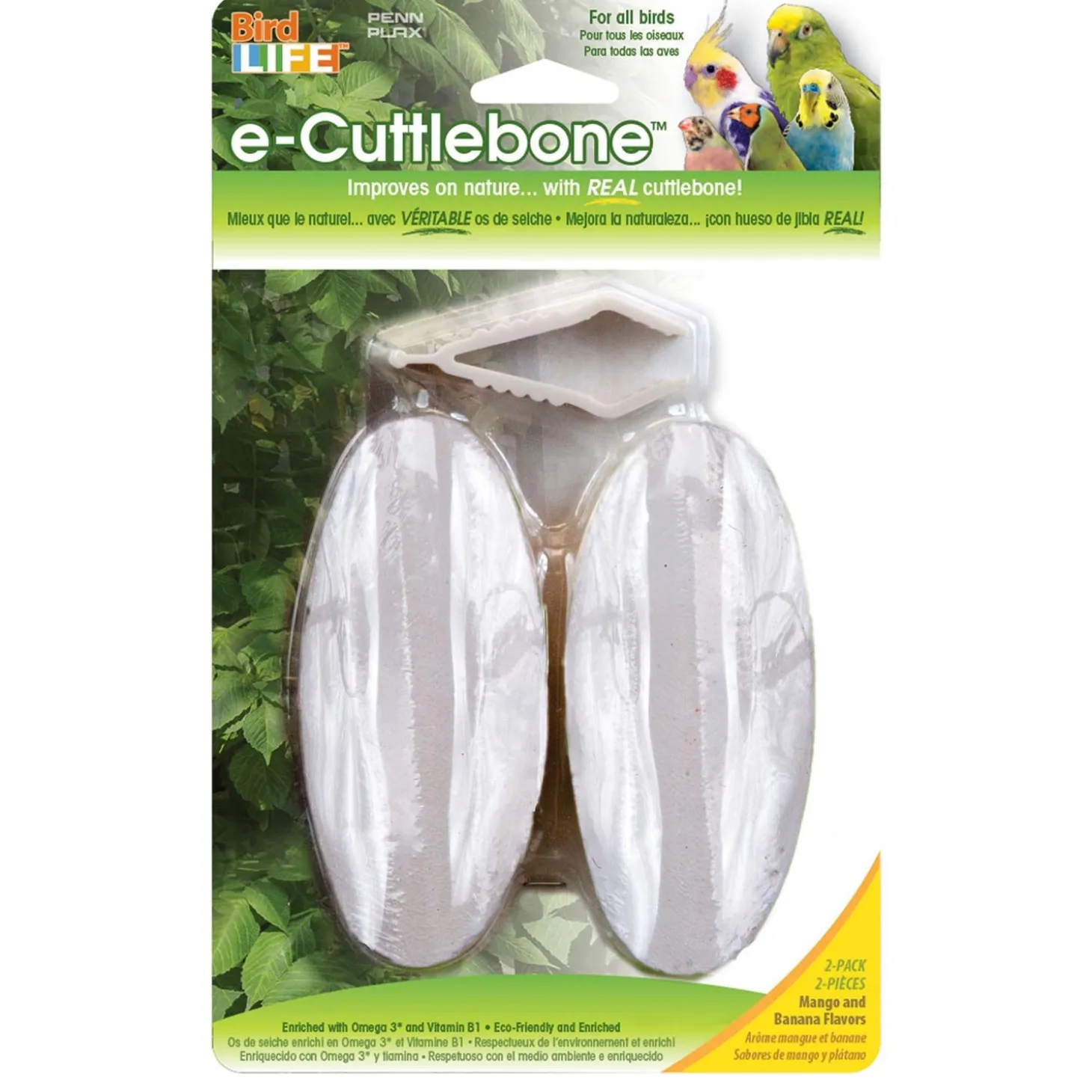 Penn-Plax Natural e-Cuttlebone Mango & Banana Flavours is the perfect way to supplement your birds’ calcium intake. Change things up for your pet with this 2-Pack of Natural e-Cuttlebones. Along with providing additional vitamins and minerals, these natural e-Cuttlebones allow for a subtle and stimulating change in your pet’s daily life.