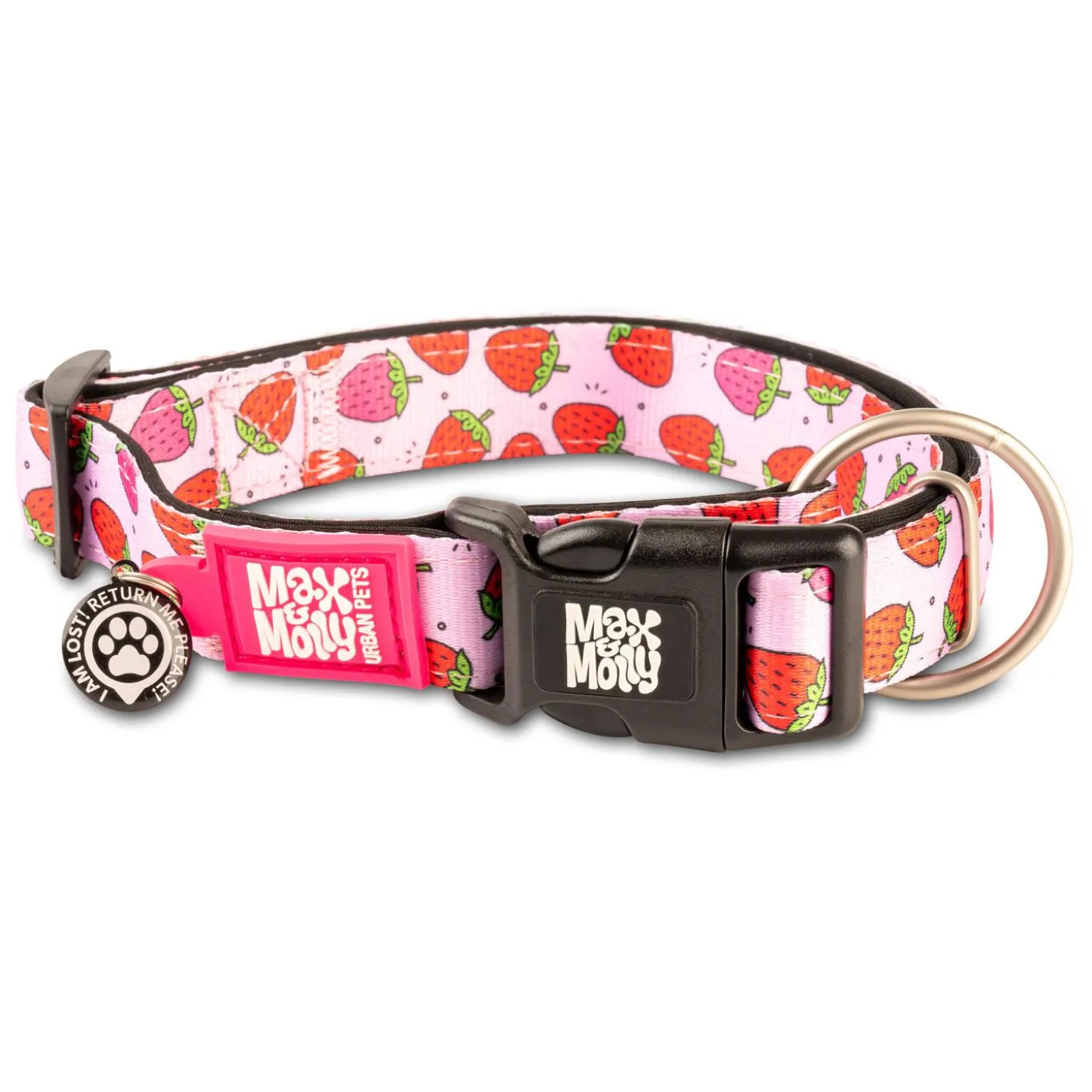 Max & Molly Urban Pets Neoprene SMART ID Strawberry Dog Collar is designed in Germany. This collar is made with a unique 3-layer construction of plush neoprene and polyester that provides full-coverage comfort and flexibility, minimizing strain and irritation on a dog’s neck. Safety features include a power buckle (that can hold 5x a dog’s weight), a no-escape safety ring, and Gotcha! Lost & Found Smart ID Tag & Mobile App. Every Max & Molly collar includes a unique Smart ID Tag with a universal QR code. This inclusive feature allows pet owners to create free custom profiles for their pets through the new Gotcha! Lost & Found App. In the event a pet goes missing, the finder simply scans the QR code (compatible with any smartphone camera) and instantly has access to view the pet’s profile with contact details and any other critical information. Whenever the missing pet’s Smart ID Tag is scanned, the owner instantly receives a notification and the geo-location from the scan!