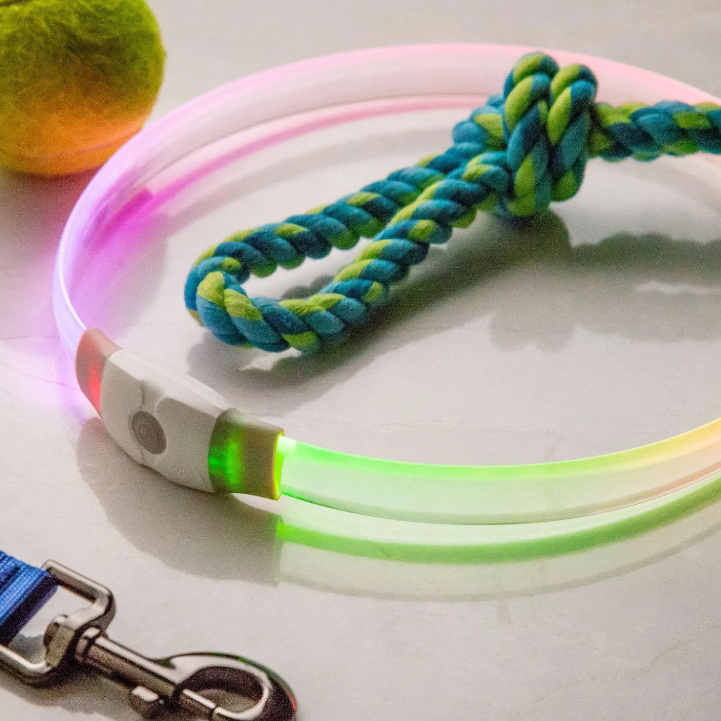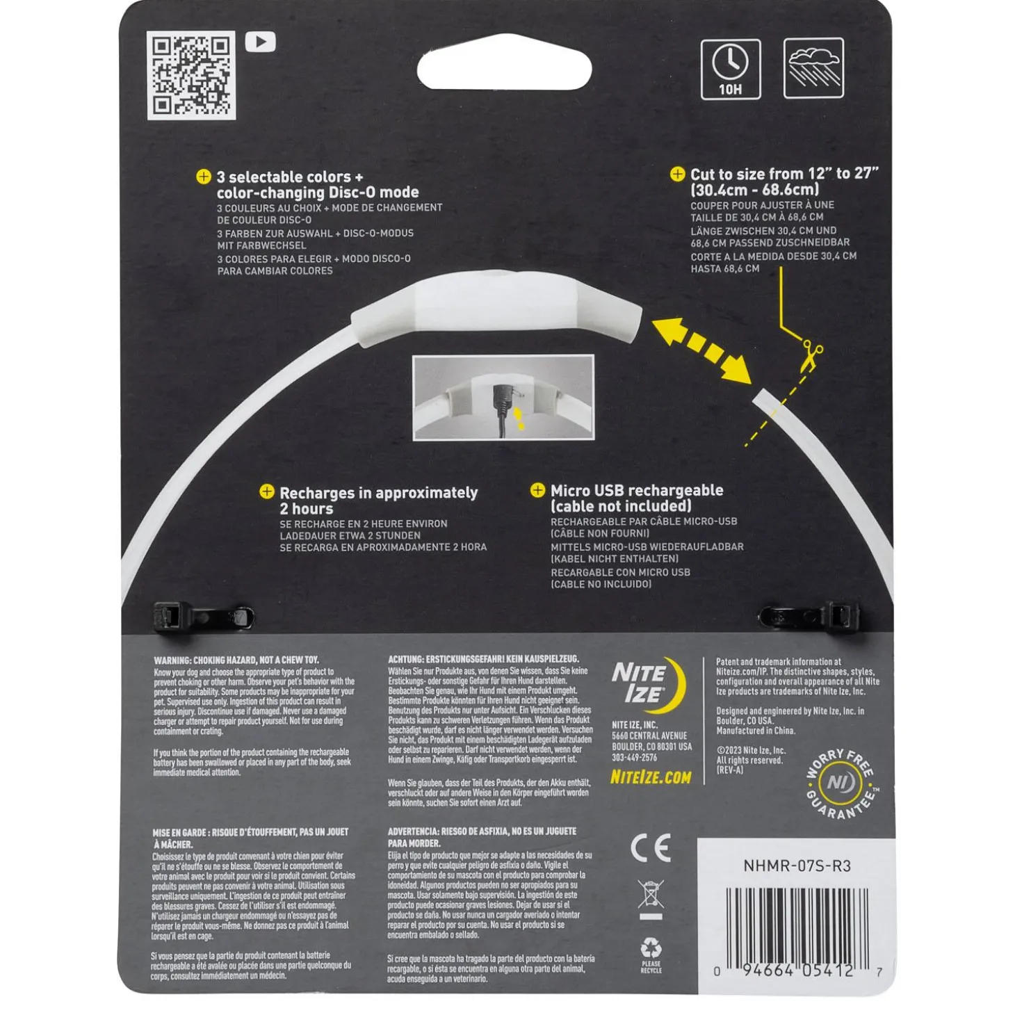 Nite Ize NiteHowl Max Disc-O Select Rechargeable LED Safety Necklace is ruff, tuff, and fluff-friendly. Uniquely designed for fluffy, thick-coated dogs, its extra-wide, weather-resistant band lays flat on top of their coat, ensuring it doesn’t get lost in the fluff. With a full 360 degree ring of light, slip on this necklace so you can always spot your pup from the yard to the park (and ensure drivers can, too). Simply press the button to shine, cycling through Disc-O Select’s three selectable colours of red, green, and blue, plus colour-changing Disc-O mode for a unique colour blend. Cut the band on its end for a perfect fit, with an adjustable size from 30.5cm-68.6cm (12″-27″). Recharging in 2 hours with a micro USB cable (not included), NiteHowl Max has a run time of 10 hours to keep up with your fluff ball.