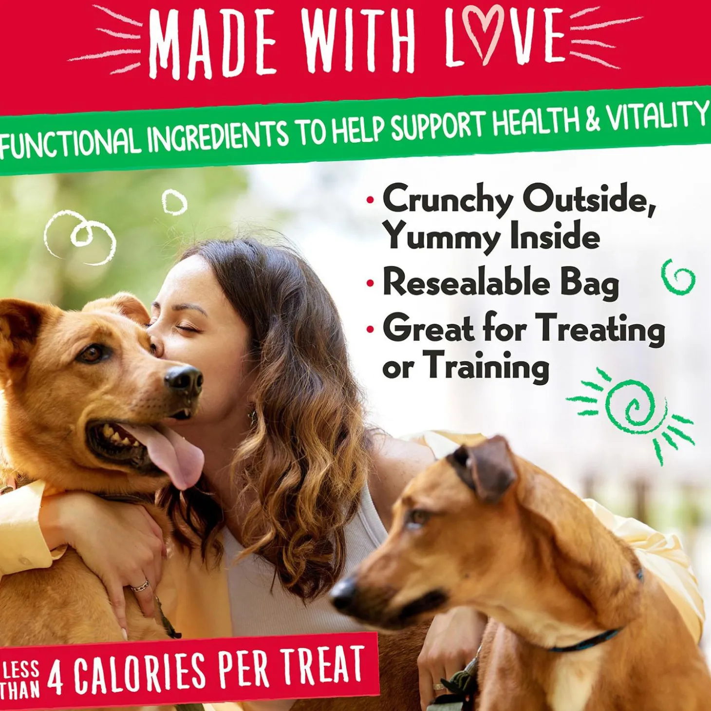- Less than 4 calories per treat