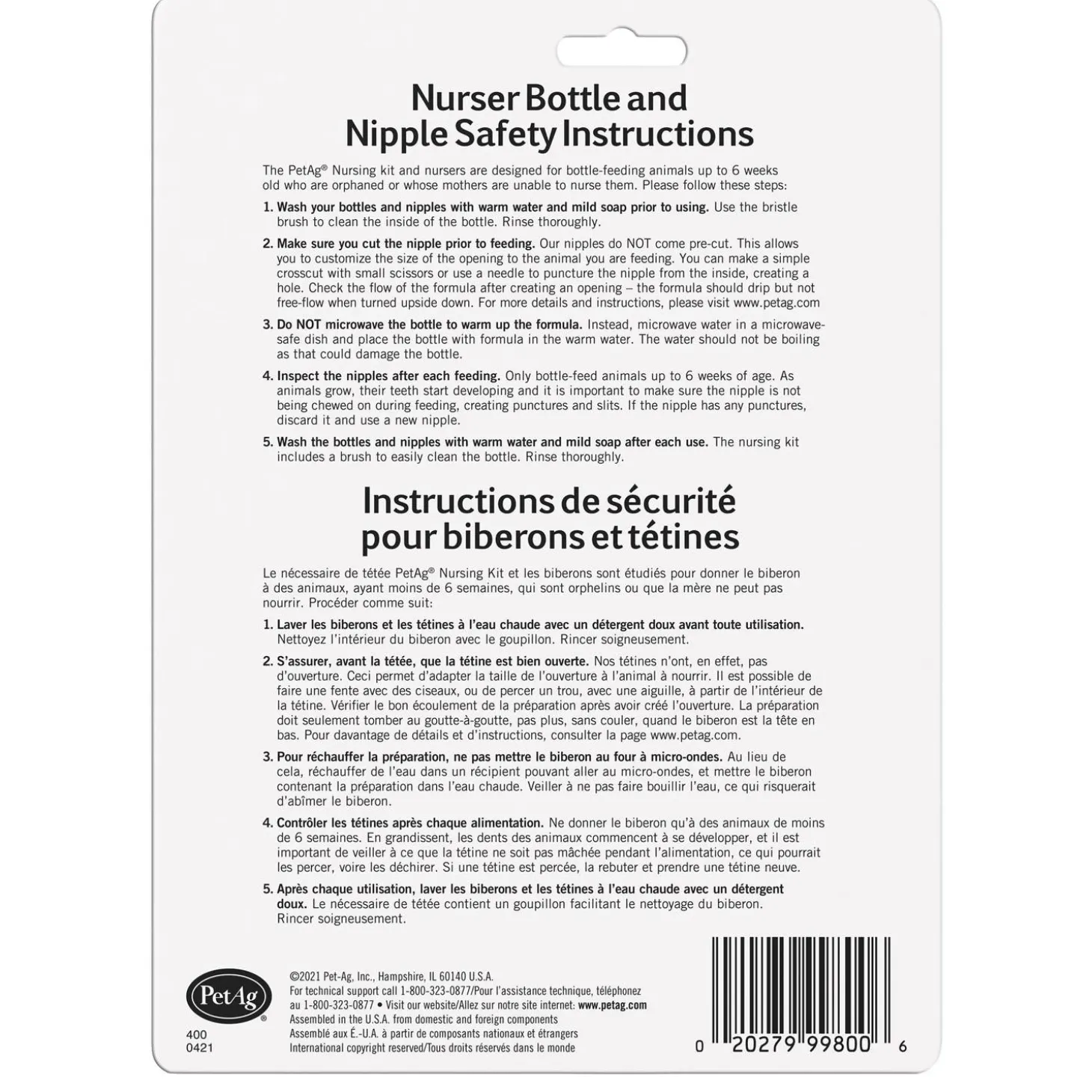 Pet-Ag Nursing Kit comes with bottles and nipple specially designed for small and large babies. Bottle feeding allows animal to refuse formula when full. Nursing action develops facial muscles and stimulates the normal flow of saliva. The bottle is durable enough to stand up to repeated use. Marked with graduations to make monitoring food intake easier and to help prevent over or under feeding. Constructed of durable, flexible silicon that are readily acceptable and latex-free.