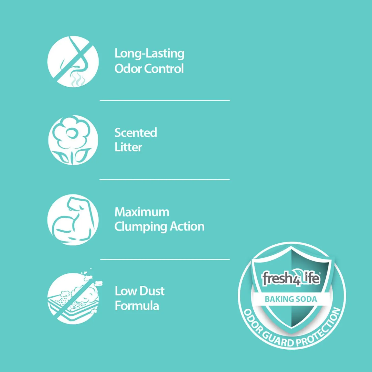 Fresh 4 Life Ocean Breeze Clumping Cat Litter is formulated with proven Baking Soda Odour Guard Protection providing long-lasting odour control with maximum clumping action. Enjoy a light and fresh tropical scent and forget about litter odours with Fresh 4 Life Ocean Breeze Clumping Cat Litter.