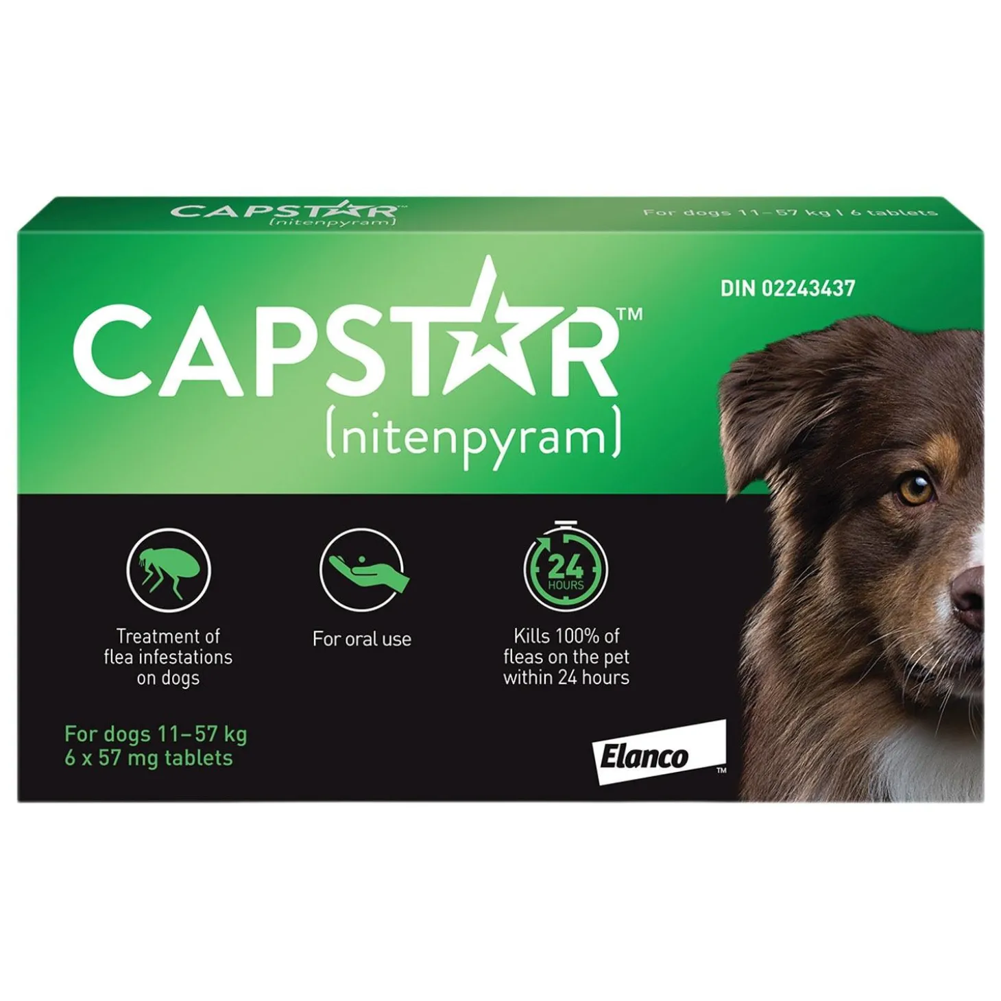 Capstar Oral Flea Medium & Large Dog Treatment is a fast-acting flea treatment tablet for use in dogs that starts killing fleas in only 30 minutes.* A single dose of Capstar kills 98% of fleas on the pet within 6 hours, and 100% of fleas within 24 hours. For continuous flea protection, use a monthly topical flea treatment like Advantage II.