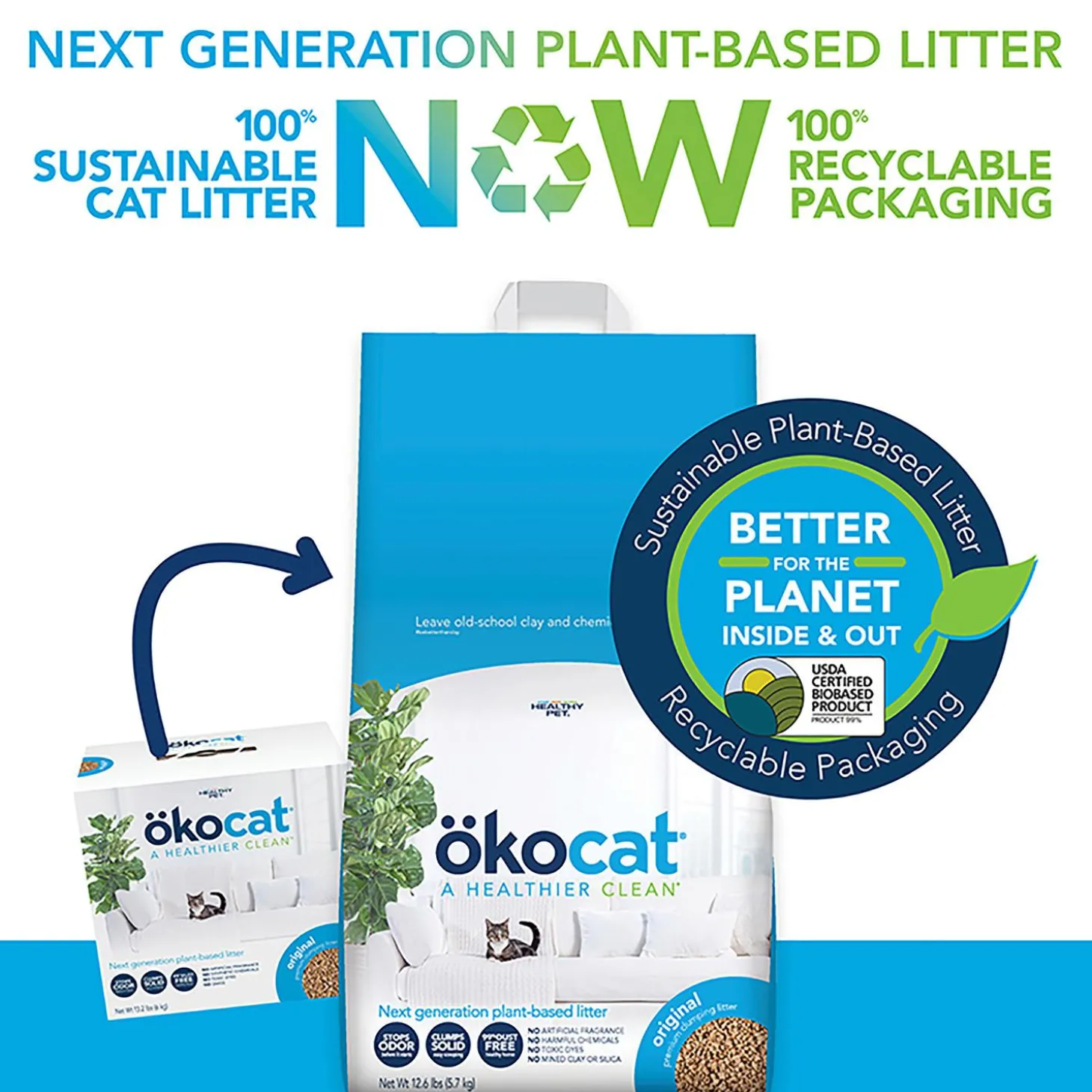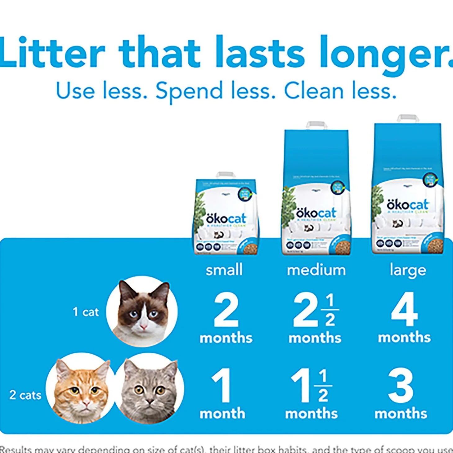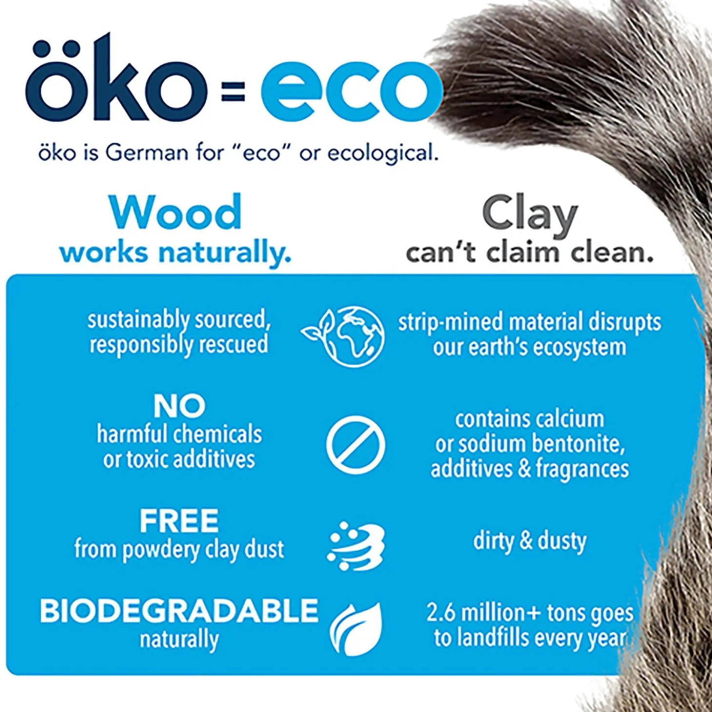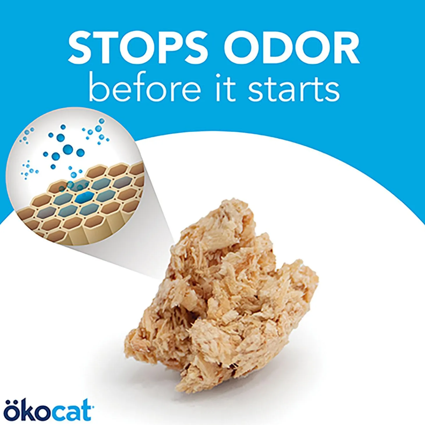 Okocat Original Clumping Cat Litter is a cleaner and healthier litter for your cat, family and home. Okocat original clumping litter is relentless at controlling odour, while offering a pleasant, playful texture that’s easy on paws and a fresh natural scent reminiscent of the great outdoors. Plus it lasts longer because of its fast and furious absorption and is naturally lightweight for easy lifting, pouring and disposal. Made entirely from sustainably sourced, responsibly rescued natural wood fiber that can safely be returned to the earth, making it biodegradable while offering the brilliance of European engineering, so you get a better performing, natural litter