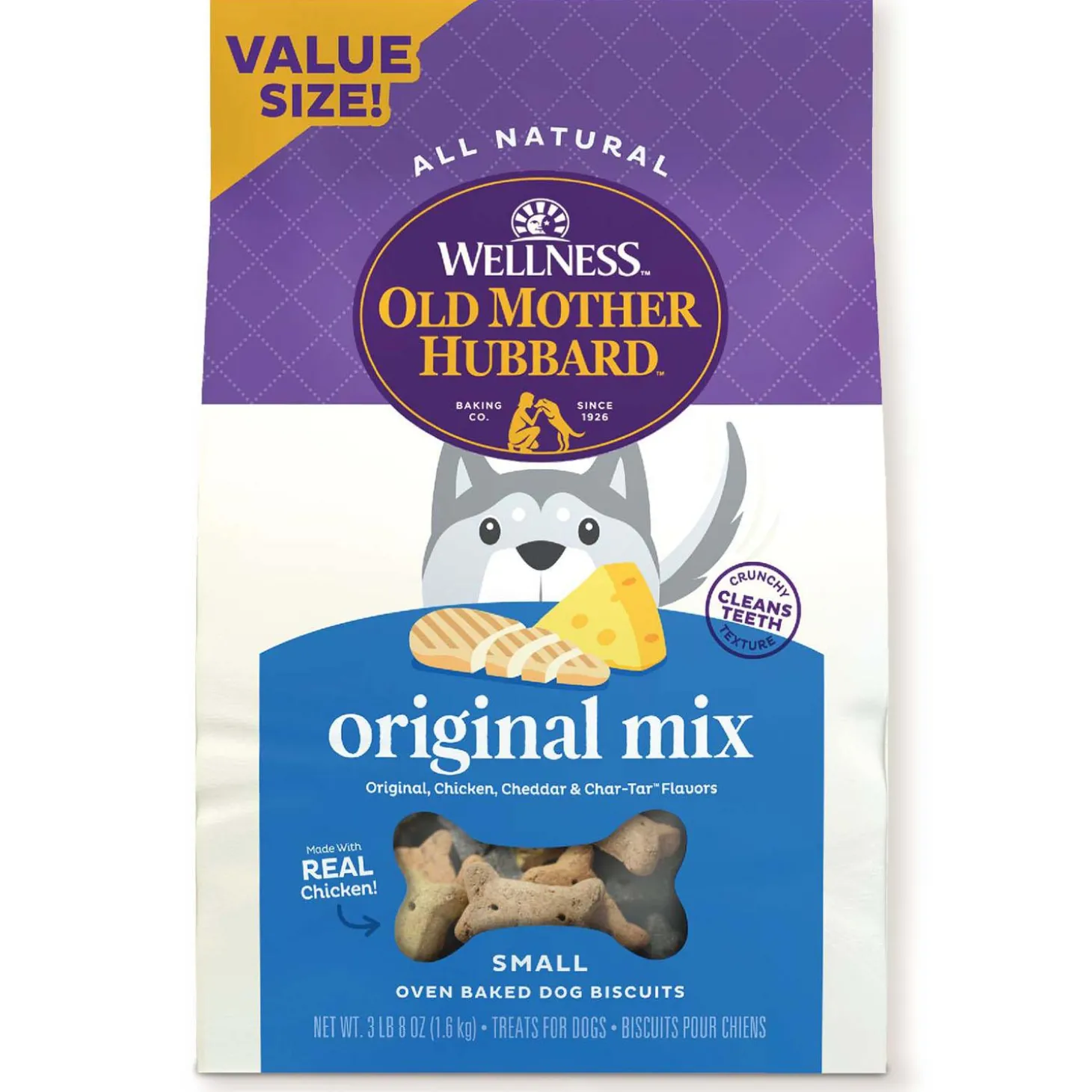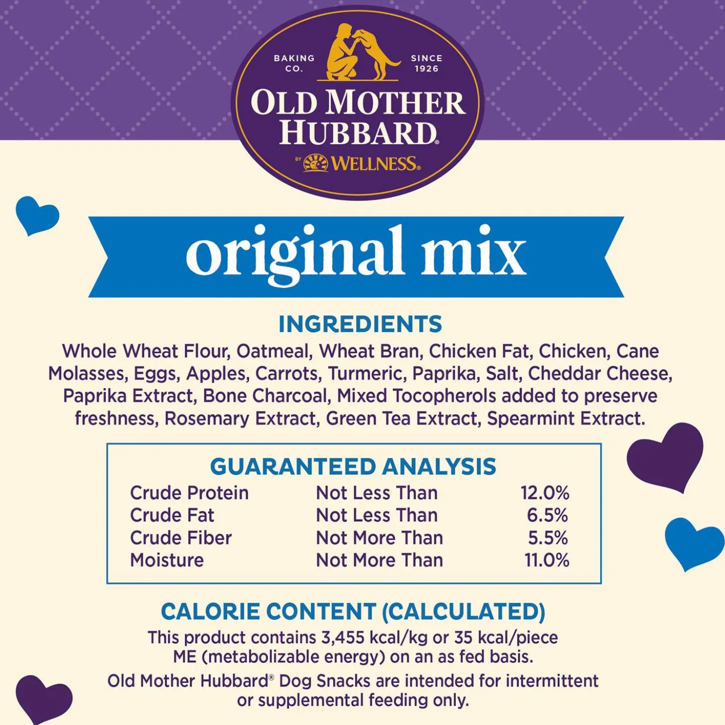 Old Mother Hubbard Original Mix Small Dog Treats are all natural with no added artificial preservatives, and their crunchy texture helps clean teeth. Every treating moment is a chance to show ’em some love. That’s why these homestyle recipes start with all-natural, mouthwatering ingredients. Each biscuit is slowly oven-baked to preserve the natural flavours in all the varieties dogs love to catch, chew and eat. These Original Mix Small Dog Treats contain an assortment of original, chicken, cheddar, and Char Tar flavours for a tasty and wholesome treat they’ll love getting and you’ll love giving. A classic great taste since 1926!