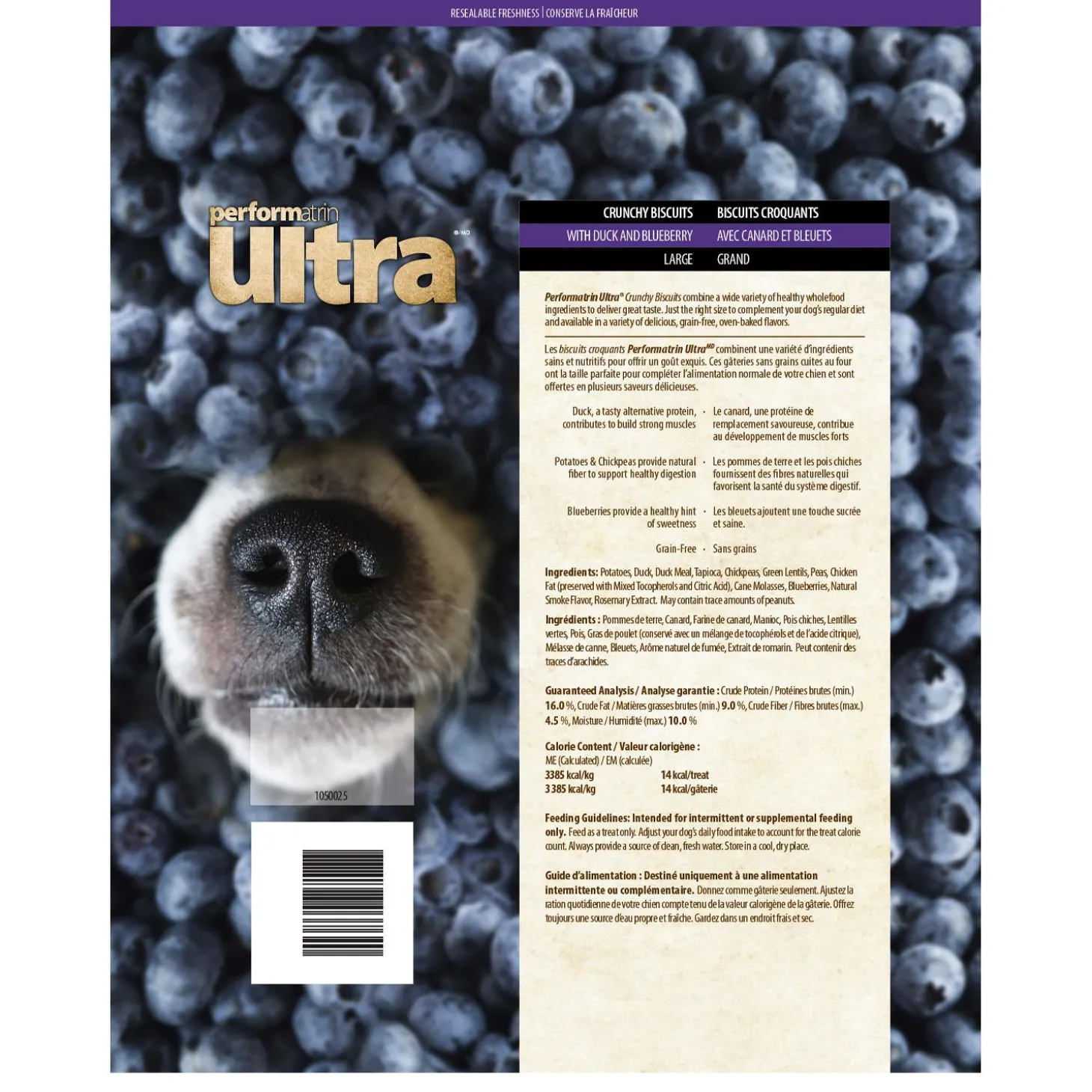 Performatrin Ultra Oven Baked Duck & Blueberry Large Dog Treats combine a wide variety of healthy wholefood ingredients to deliver great taste. Just the right size to complement your dog’s regular diet and available in an irresistible variety of oven-baked delectable flavours. Feel good about treating your dog with Performatrin Ultra Grain-Free Treats.