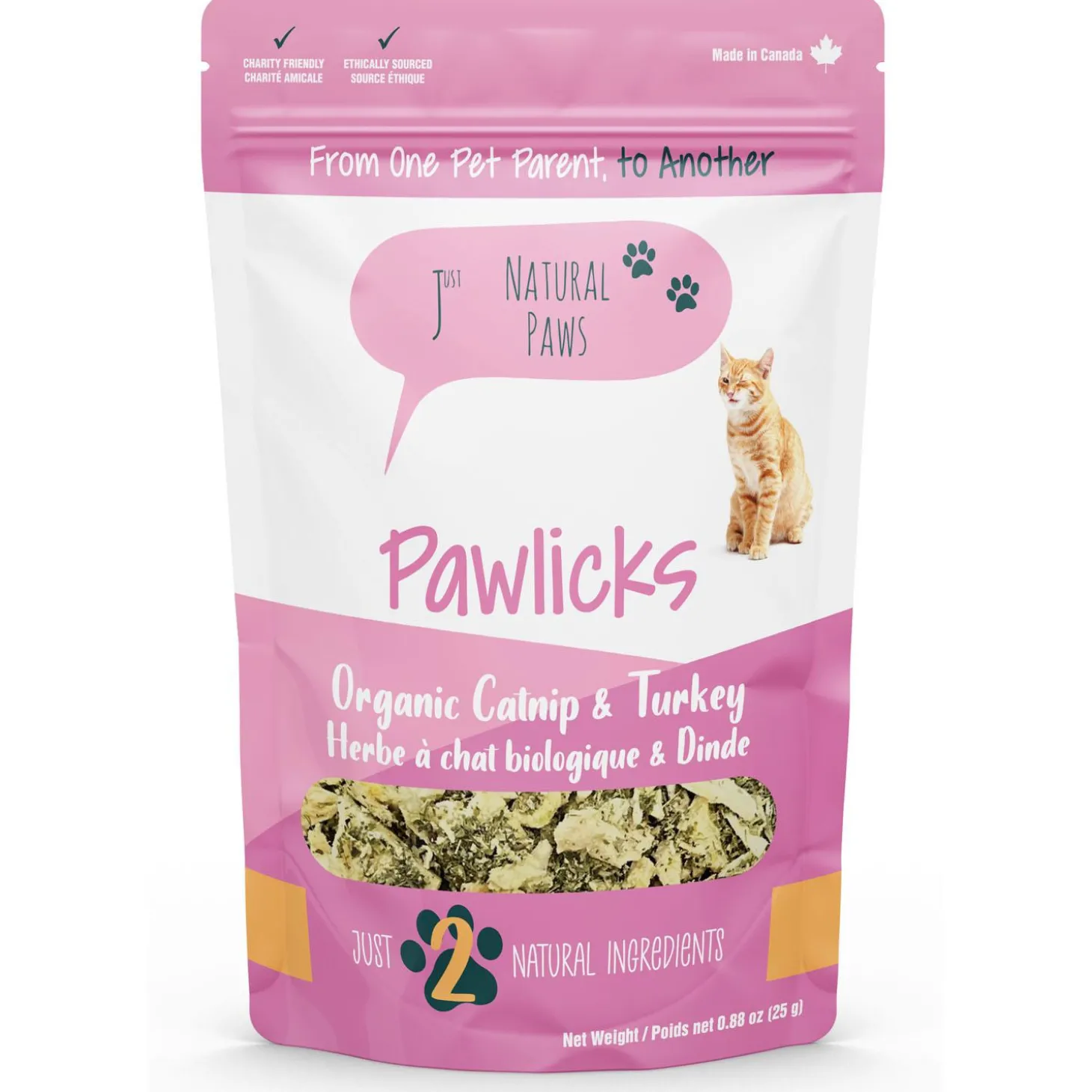Just Natural Paws Pawlicks Organic Catnip & Turkey Cat Treats are nutritious and delicious treats with a lean, protein-rich meat that offers several benefits for cats. It provides essential amino acids necessary for maintaining strong muscles, a healthy coat, and overall vitality. Turkey is also an excellent source of key nutrients like B vitamins (B6 and B12), which support energy metabolism and nervous system health. Plus, it works wonders on digestion, soothing upset stomachs and promoting healthy appetites. Every ingredient is chosen to provide wholesome nourishment for our furry companions!