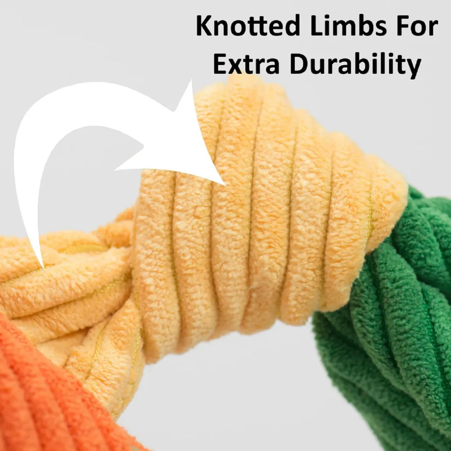- Built to last, this toy features knotted limbs for tug-of-war and a tough plush corduroy exterior