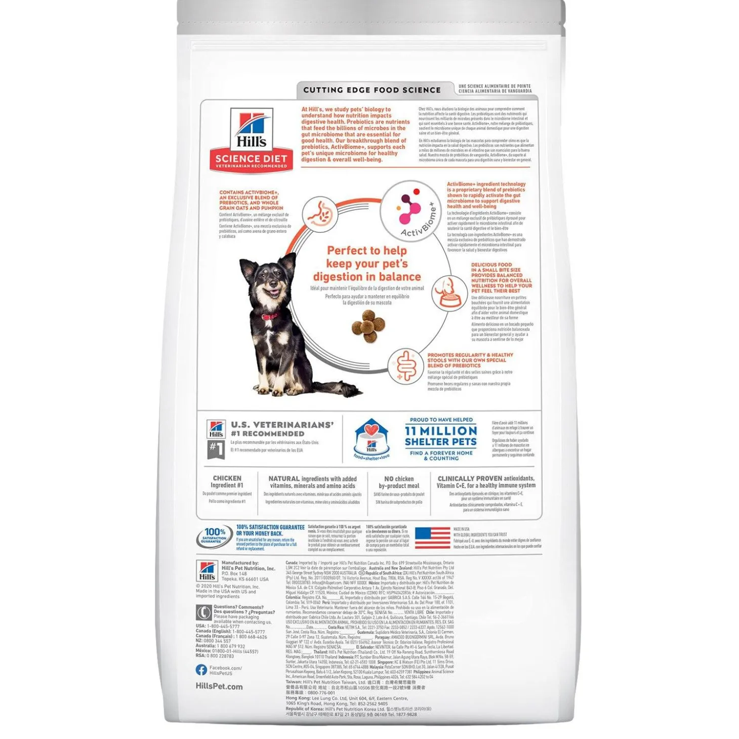 Hill’s Science Diet Perfect Digestion Small Bites Chicken Brown Rice & Whole Oats Recipe Adult Dog Food is crafted with your dog’s digestive and overall well-being in mind. Hill’s Science Diet Adult Perfect Digestion Small Bites recipe is a healthy, nutritious, and delicious option for feeding time! The exclusive ActivBiome+ Technology works to rapidly activate your pet’s unique gut microbiome for ultimate digestive health and well-being. The chicken, brown rice & whole oats recipe has plenty in the way of vitamins and antioxidants, while excluding any synthetic colours, and artificial flavours and preservatives.