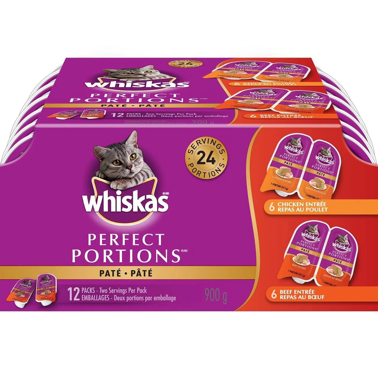 Whiskas Perfect Portions Pate Chicken & Beef Variety Pack Adult Cat Food is always fresh*, with no mess and no leftovers. Feed your cat the perfect meal everytime! *freshly opened individual portion