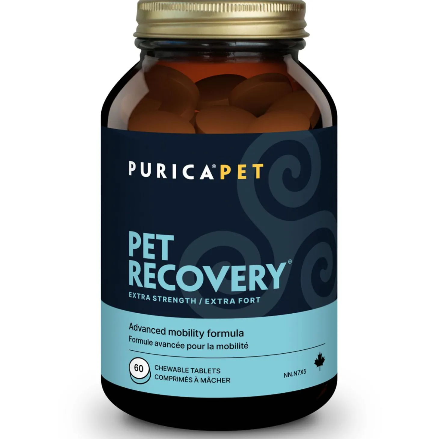 Purica Pet Recovery Extra Strength Advanced Mobility Formula Beef Liver Flavoured Pet Supplements are a natural joint support for dogs & cats. It can also be used for post-surgery recovery. With 25 years of proven results, these scientifically refined formulas combine the wisdom of ancient wellness with modern innovation to help pets live their fullest lives, at every age. Crafted in Canada with superior ingredients and unwavering commitment to quality. A complete spectrum of natural ingredients supporting your pet’s mobility needs – from active life to recovery and senior comfort.