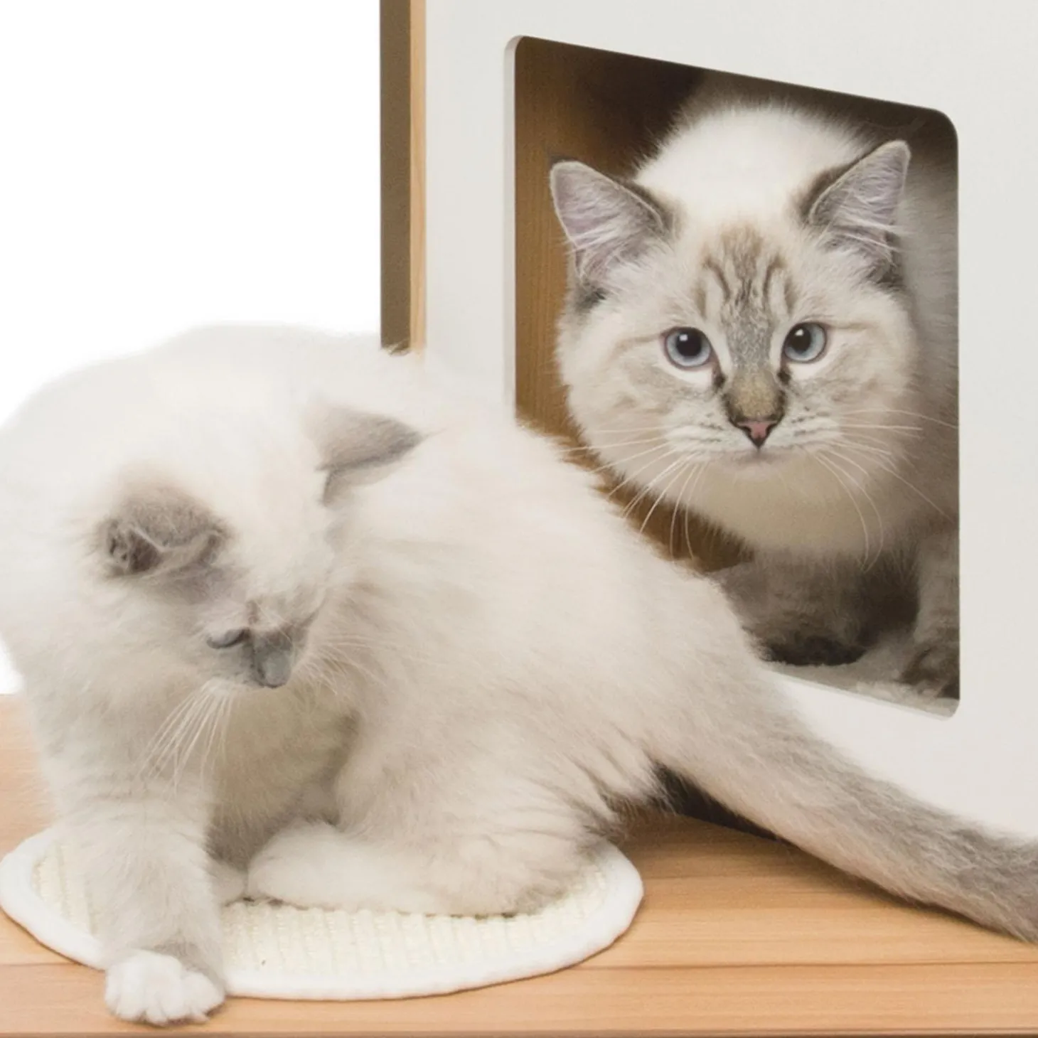 - Elegant yet practical line of cat furniture that satisfies the daily activity needs of fussy felines