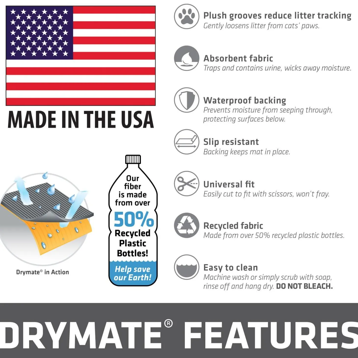 Drymate Plush Litter Trapping Grey Cat Litter Mat is designed to reduce litter tracking in your home. The ridged material gently separates cats’ paws when they land on it causing litter to be released from their paws. Litter then becomes trapped within the ridges of the mat reducing tracking throughout your home. Not only does it reduce litter tracking it also makes cleanup around the litter box simple and easy. Gently shake excess litter off the mat, back into litter box, and machine wash as needed. Cat with sensitive paws? No worries! The soft fibers of are gentle on cats’ paws. Featuring waterproof backing which makes sure that the floors are protected from litter box misses and accidents.