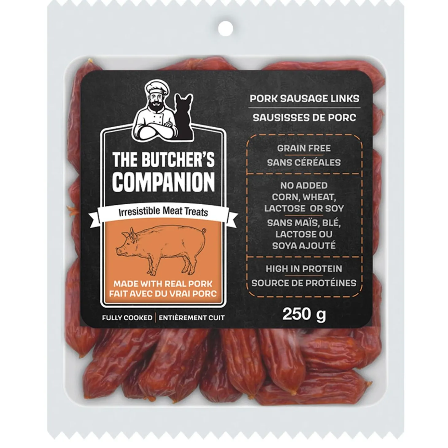 The Butcher’s Companion Pork Sausage Links Dog Treats have an irresistible taste with real pork as the first ingredient. This tasty snack is made with wholesome ingredients, loaded with protein, grain free, with no added corn, wheat, lactose or soy, and naturally smoked. These tender, bite-sized treats are perfect for training, ready to break into any size, and suitable for all breeds of dogs.