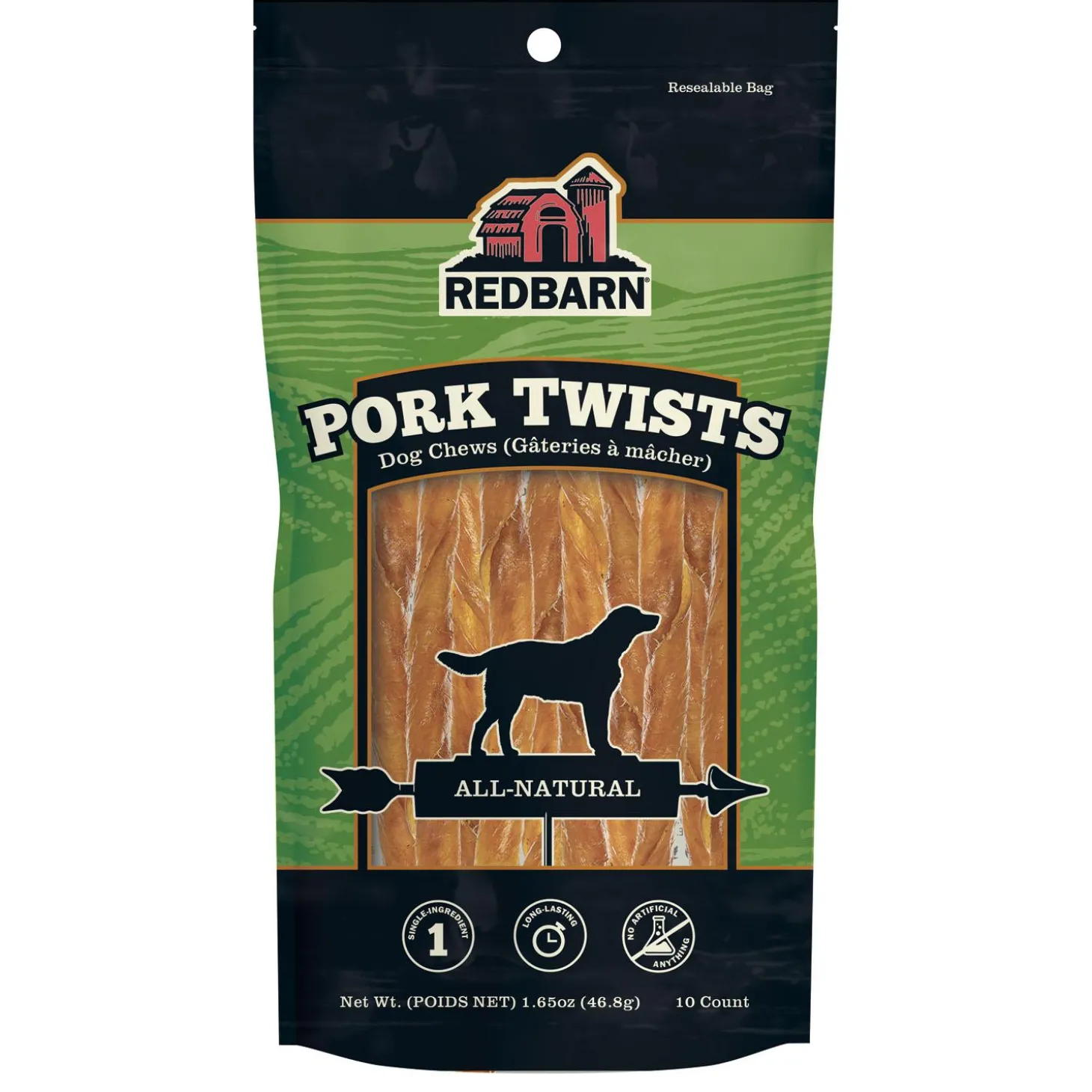 Redbarn Pork Twists Dog Treats are from a collection of Pig Ears, Snouts and Ham Bones and are made with all-natural pork and nothing else. Your dog doesn’t have to hunt any longer for their favorite pork chews. Redbarn’s Pork Twists are all-natural, single-ingredient dog chews. Made 100% from pork skin, they are an excellent rawhide alternative to beef and rawhide chews, packed with flavour and health benefits. Not only do they help reduce stress and fight boredom throughout the day, but the natural act of chewing helps support their dental health by gently massaging their gums and cleaning away plaque and tartar buildup.
