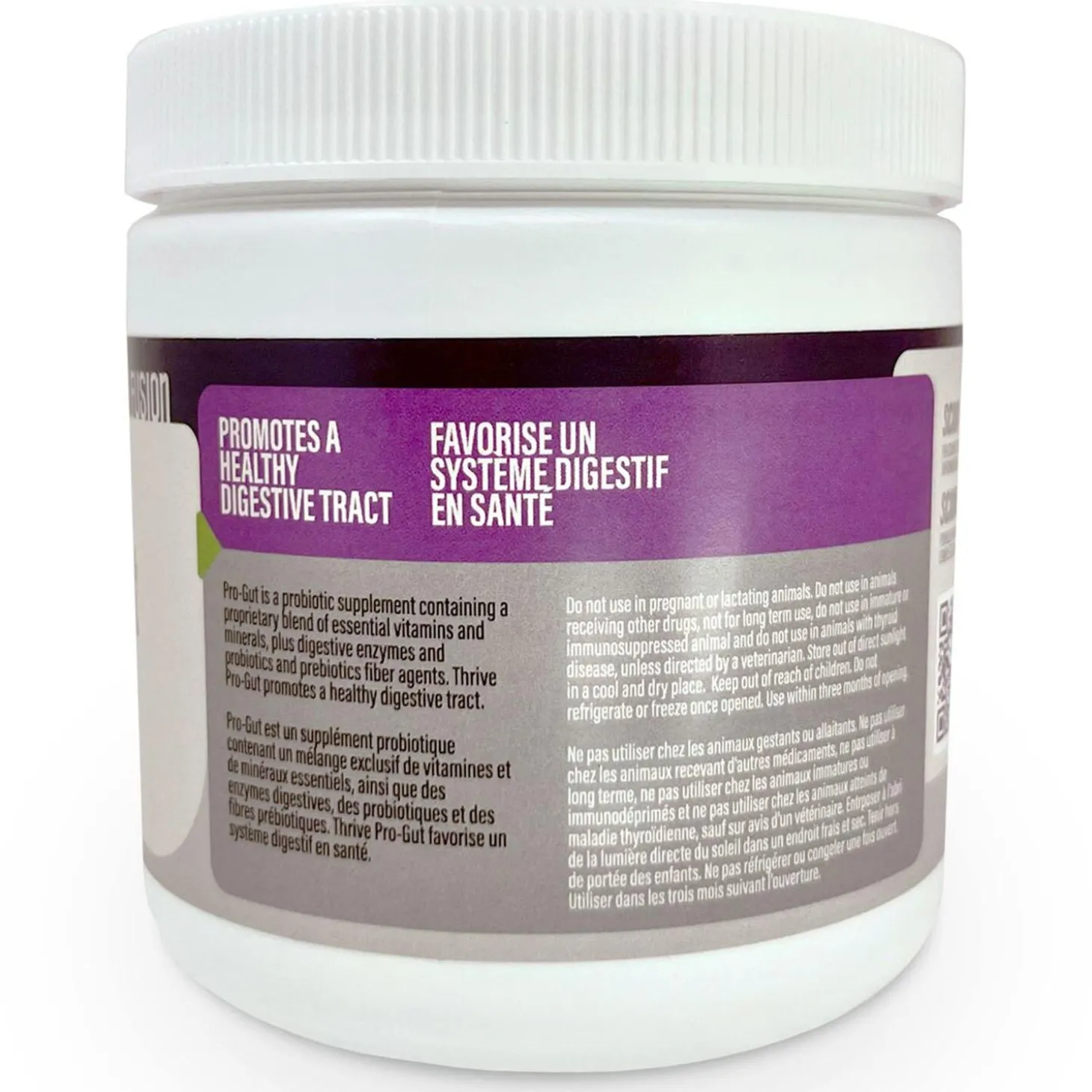 Thrive Pro-gut Probiotics Fusion Supplement is a probiotic supplement containing a proprietary blend of essential vitamins and minerals, plus digestive enzymes and probiotics and prebiotics fiber agents. Thrive Pro-gut promotes a healthy digestive tract. This supplement can help to regulate the bowels resulting in more firm consistent stools, reduce stool odors and provide maximum absorption of nutrients. Can be offered to pets on all food diets including; raw, dry foods, dehydrated, freeze-dried and/or canned foods. This product is also suitable for both dogs and cats.