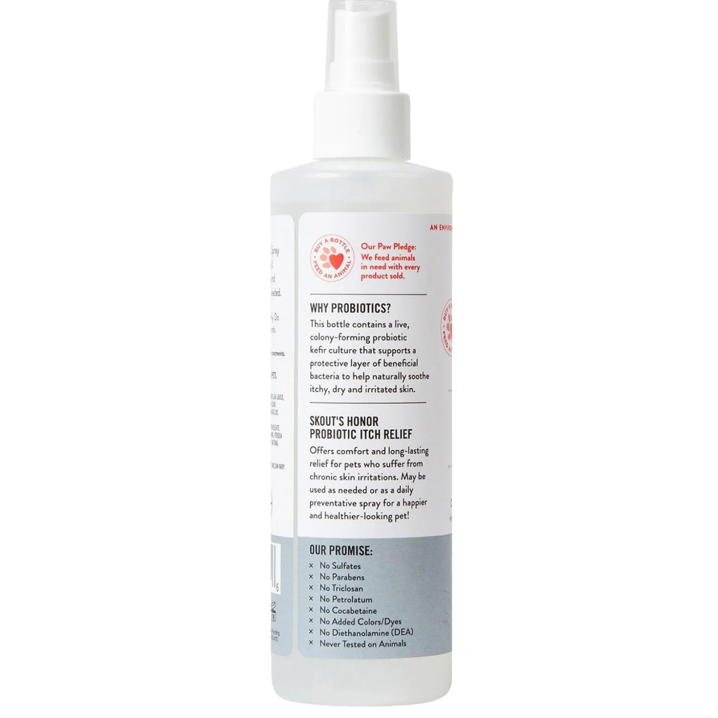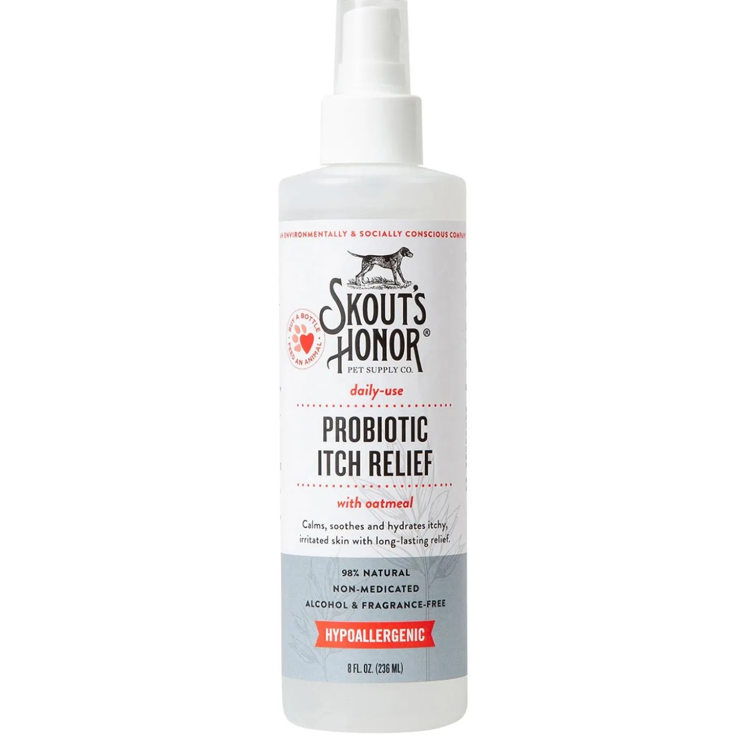 Skout’s Honor Probiotic Itch Relief Spray is a daily-use spray with oatmeal that calms, soothes and hydrates itchy, irritated skin with long-lasting relief. Can be used on both cats and dogs.