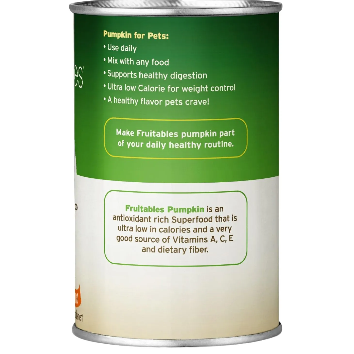 Fruitables Pumpkin Digestive Supplement for Cats & Dogs is an ideal addition to your pet’s daily routine. Fruitables Pumpkin is ultra-low in Calories and is a great source of dietary fiber, making it a great way to support digestive health and a healthy weight.