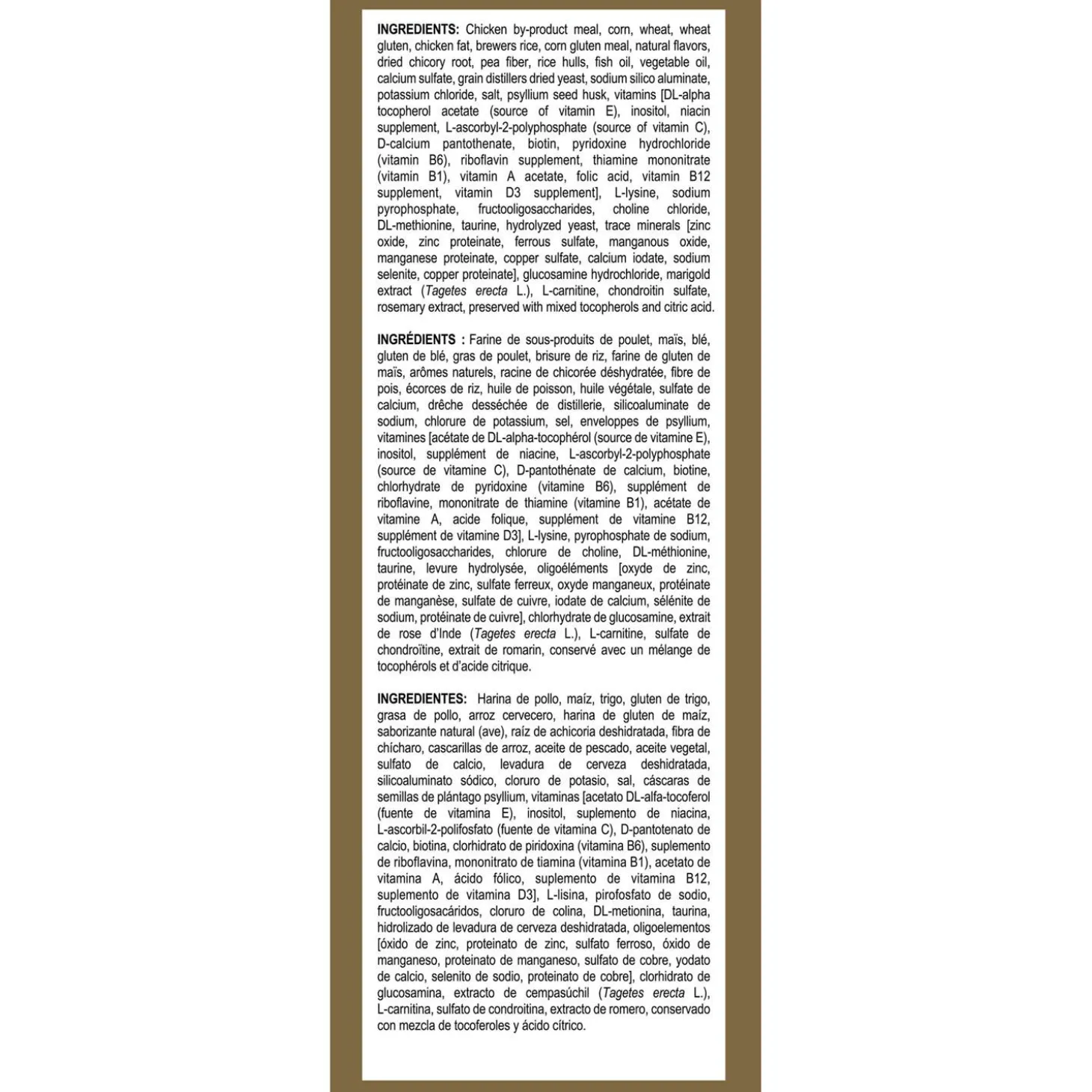 - Formula enriched with Omega 3 fatty acids, glucosamine and chondroitin.