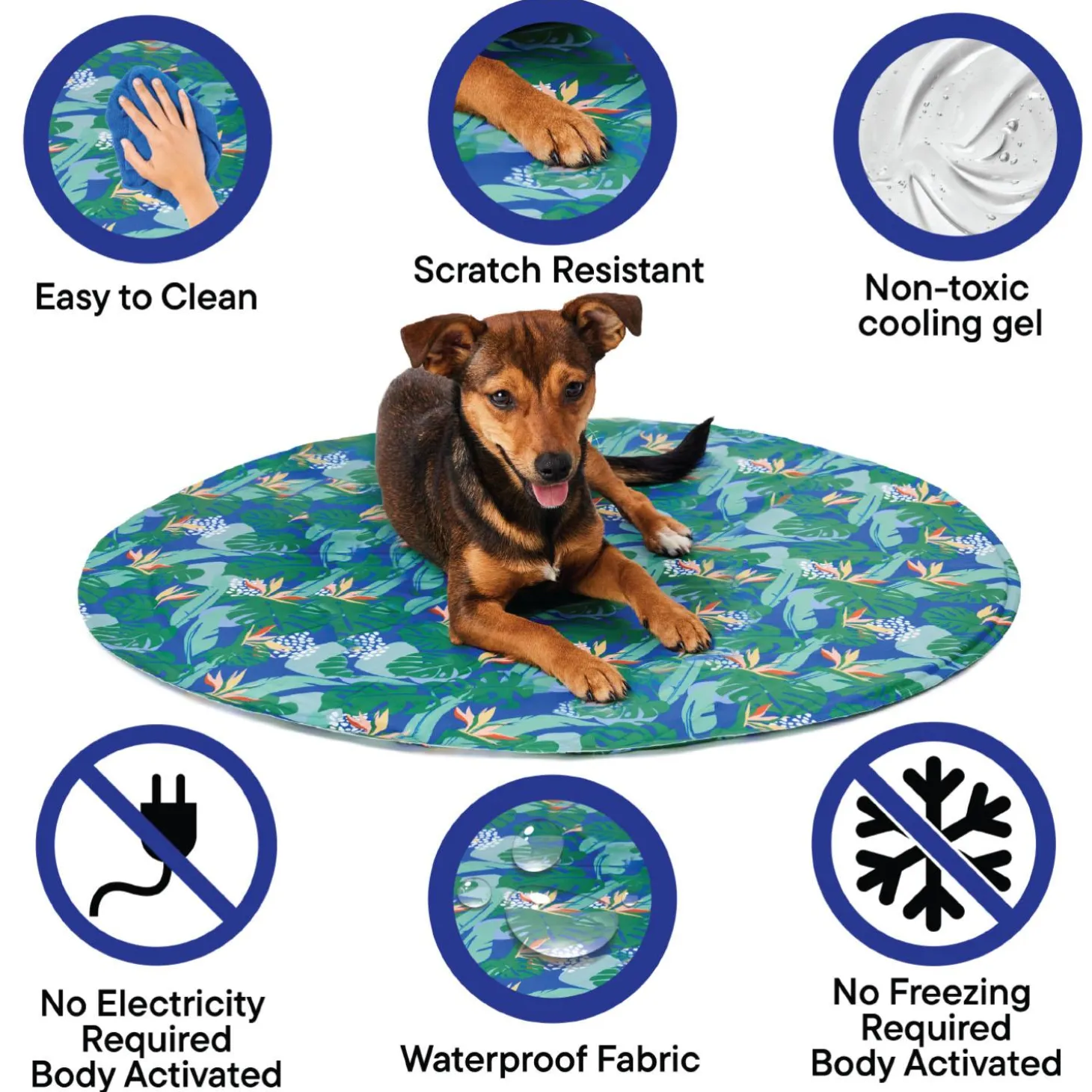 JUMP! Round Cooling Mat is the ultimate in cooling comfort. Designed to keep your pet cool and comfortable all day long, it’s equipped with non-toxic cooling gel inside for maximum cooling. No refrigeration, water or electricity needed.