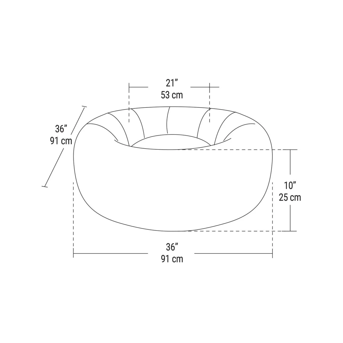 - Dimensions: 91cm L x 91cm W x 25cm H (36″ L x 36″ W x 10″ H)