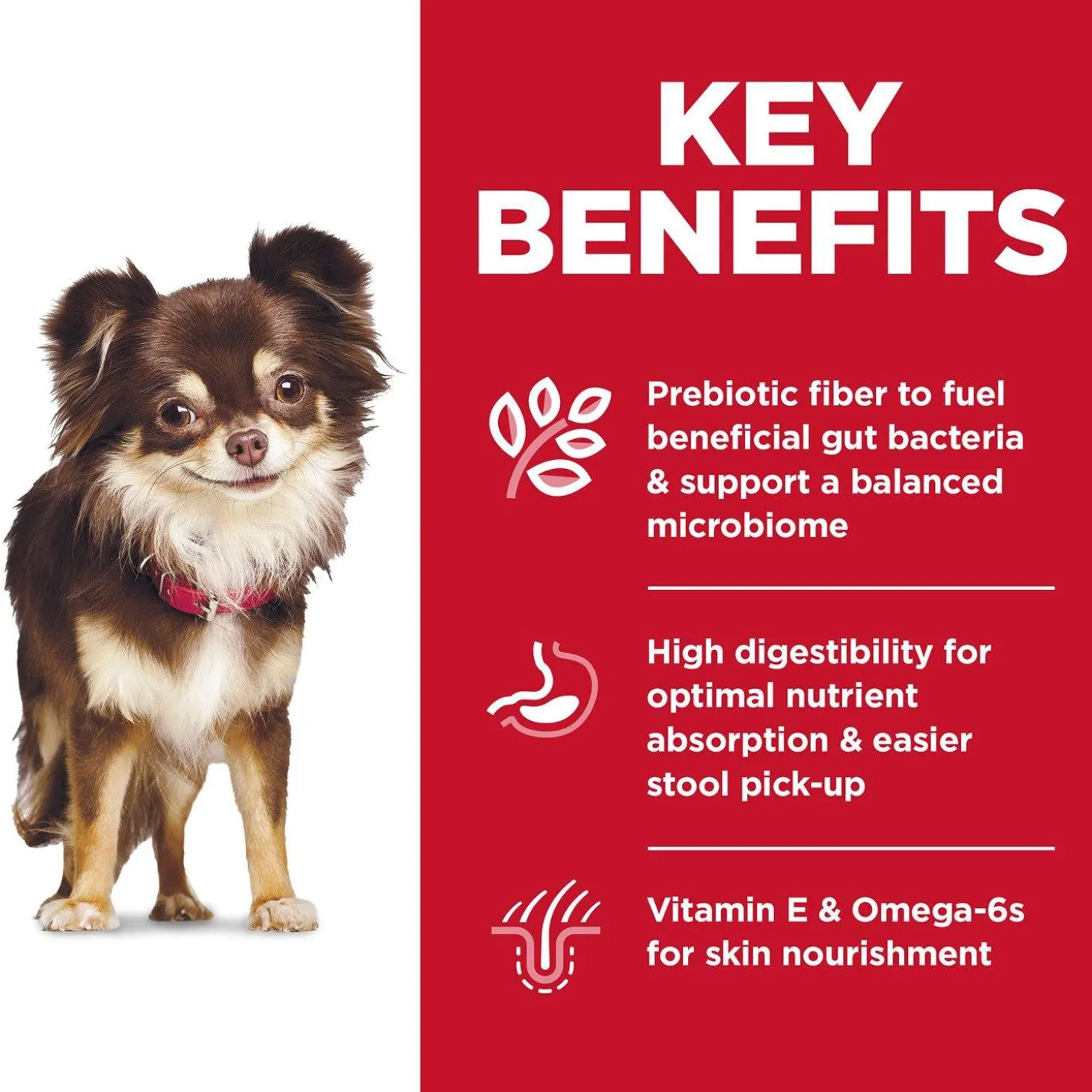 Hill’s Science Diet Sensitive Stomach & Skin Chicken Recipe Small Breed Adult Dog Food is a dog food for small & toy breed dogs that provides optimal digestive health while nourishing their skin. This sensitive stomach dog food has protein as the first ingredient and provides clinically proven antioxidant benefits for small and miniature breeds. This dry dog food made with natural ingredients is formulated with decades of cutting-edge research to be a great-tasting dog food small dogs can truly enjoy.