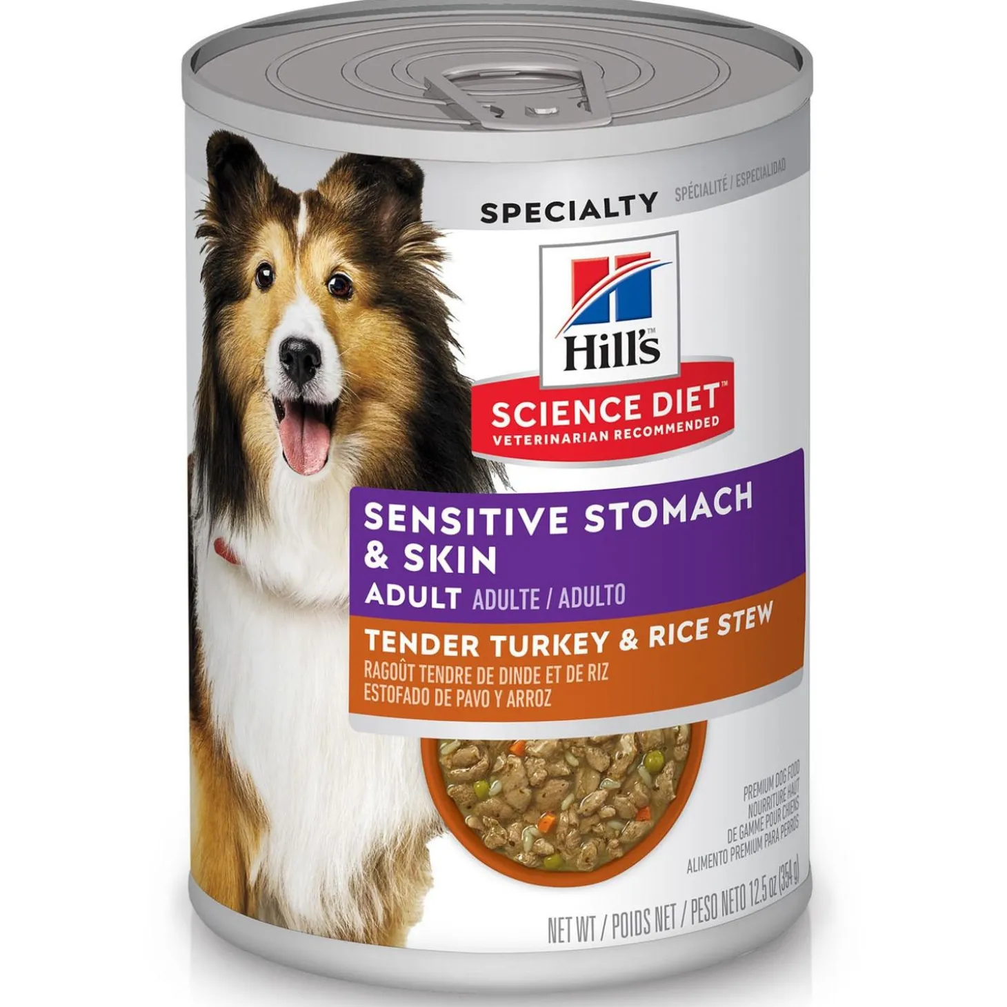 Hill’s Science Diet Sensitive Stomach & Skin Tender Turkey & Rice Stew Adult Dog Food will make your grown dog feel good inside and out. This yummy recipe is specially formulated for optimal digestive and skin health.