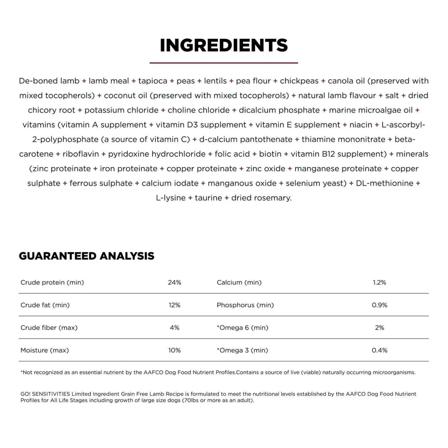 Go! Solutions Sensitivities Limited Ingredient Grain Free Lamb Recipe Dog Food is a delicious food made with premium quality lamb as the single-source animal ingredient. Using as few additional ingredients as possible, this recipe is free from common food allergens, making it a great option for sensitive dogs. Made by pet nutrition experts in Ontario, Canada with only premium ingredients, you will love the quality and your dog will love the taste.