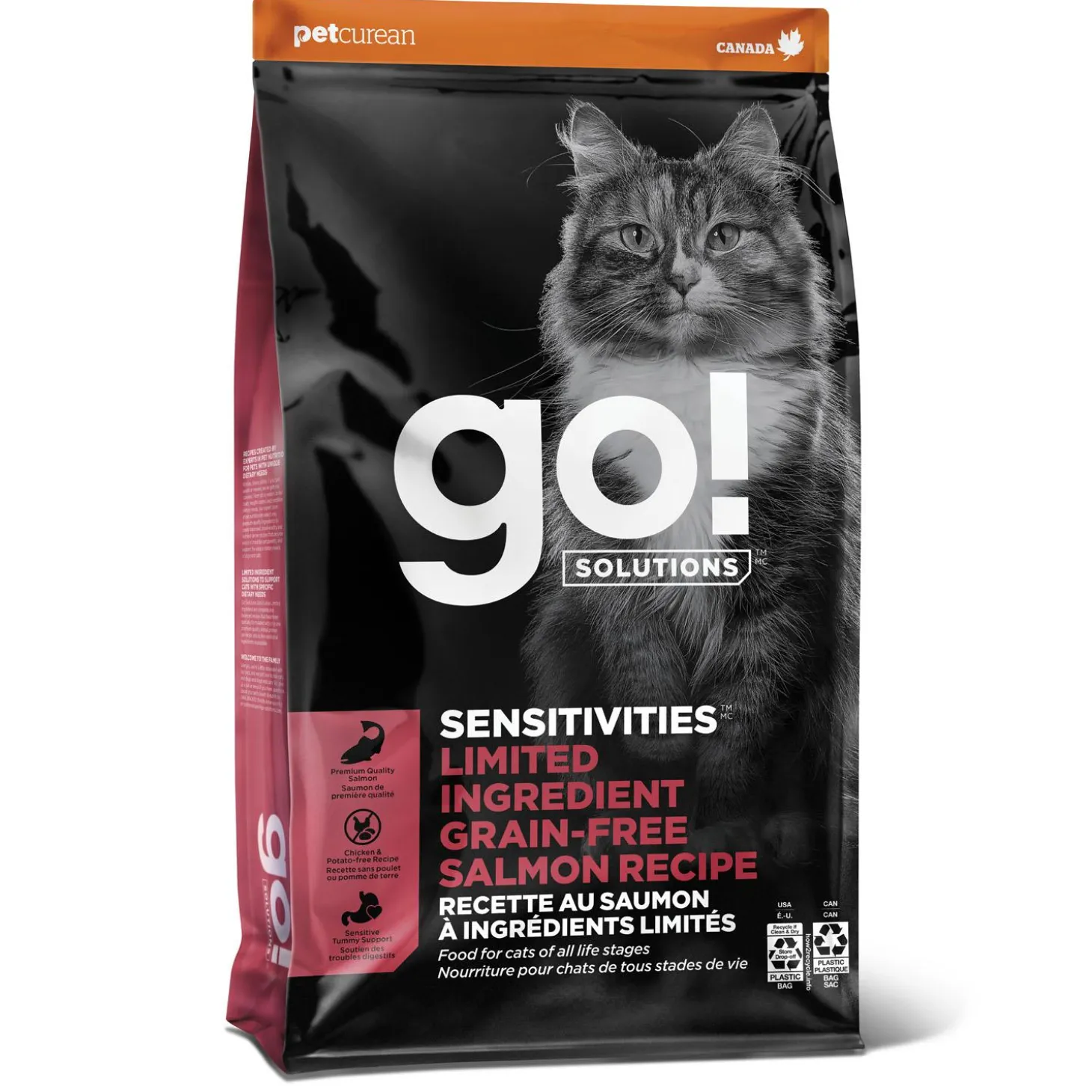 Go! Solutions Sensitivities Limited Ingredient Salmon Recipe Cat Food is formulated for health benefits and flavour, with premium quality salmon as the single-source animal protein. Using as few additional ingredients as possible, this recipe is free from common food allergens, making it a great option for sensitive cats. Made by pet nutrition experts in Ontario, Canada with only premium ingredients, you will love the quality and your cat will love the taste.